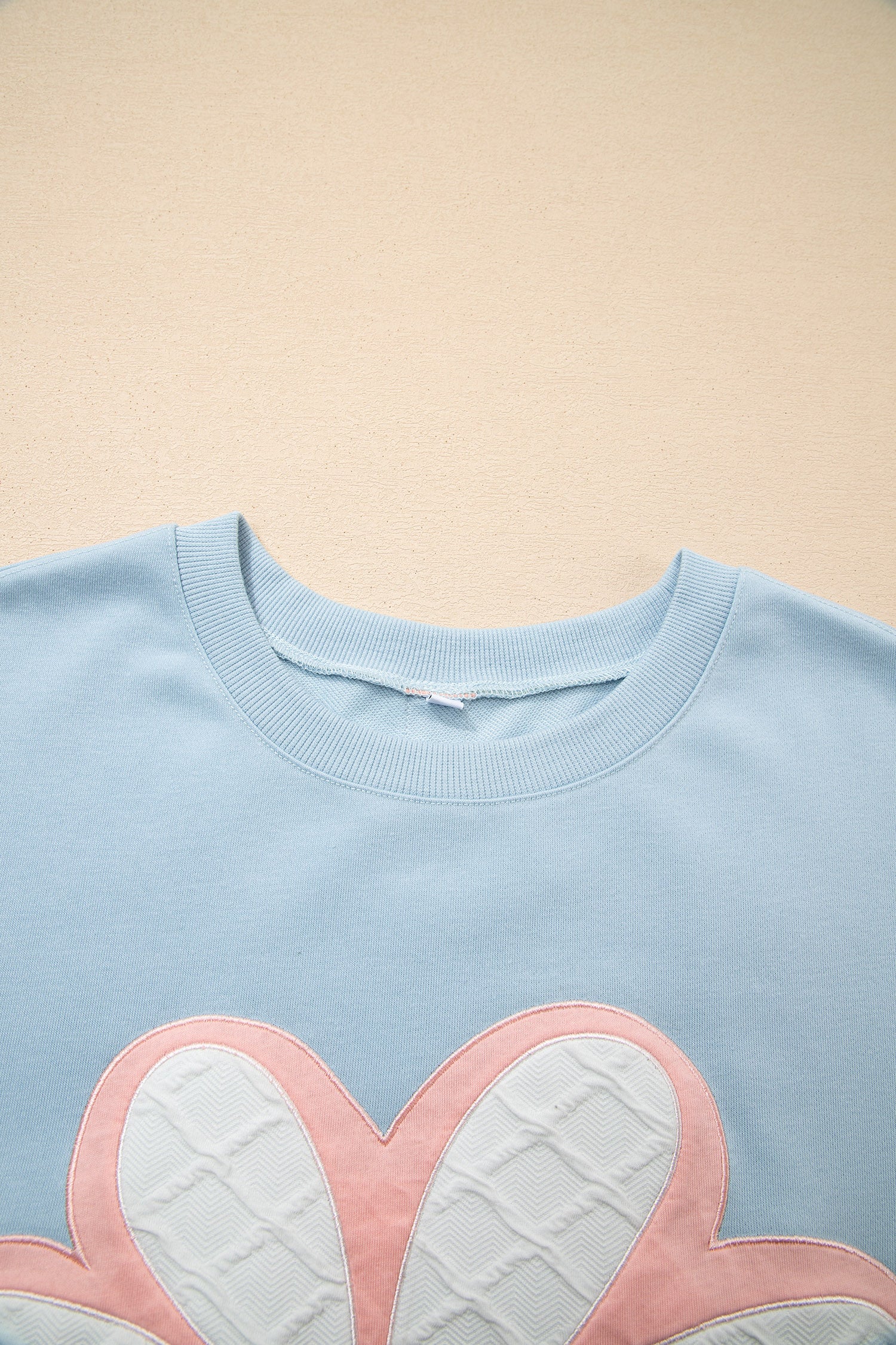 Beau Blue Big Flower Patch Drop Shoulder Striped Long Sleeve Top