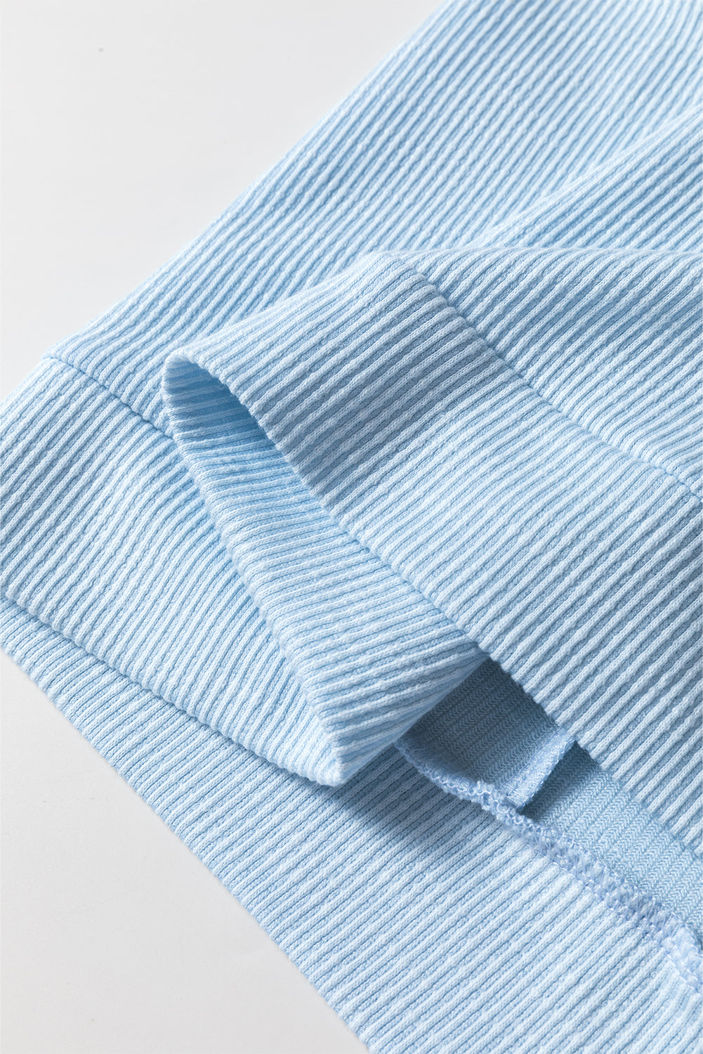 Beau Blue Textured Floral Patchwork Balloon Sleeve Blouse