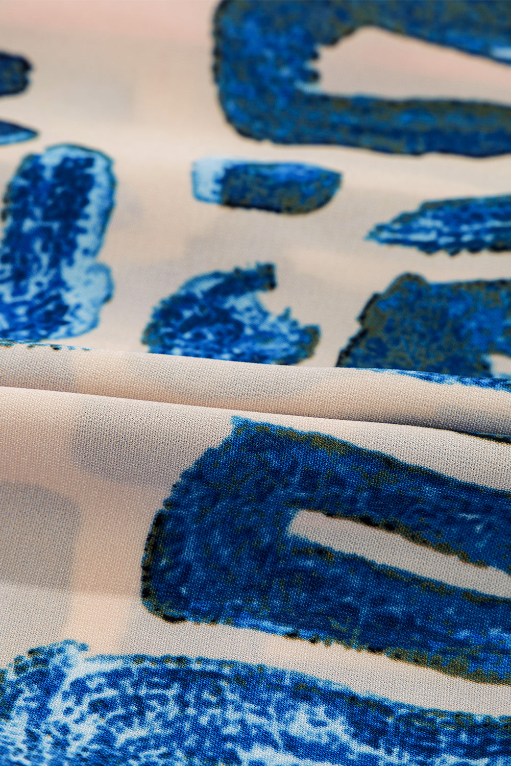 Beige Abstract Print Bubble Sleeve Button up Mini Dress