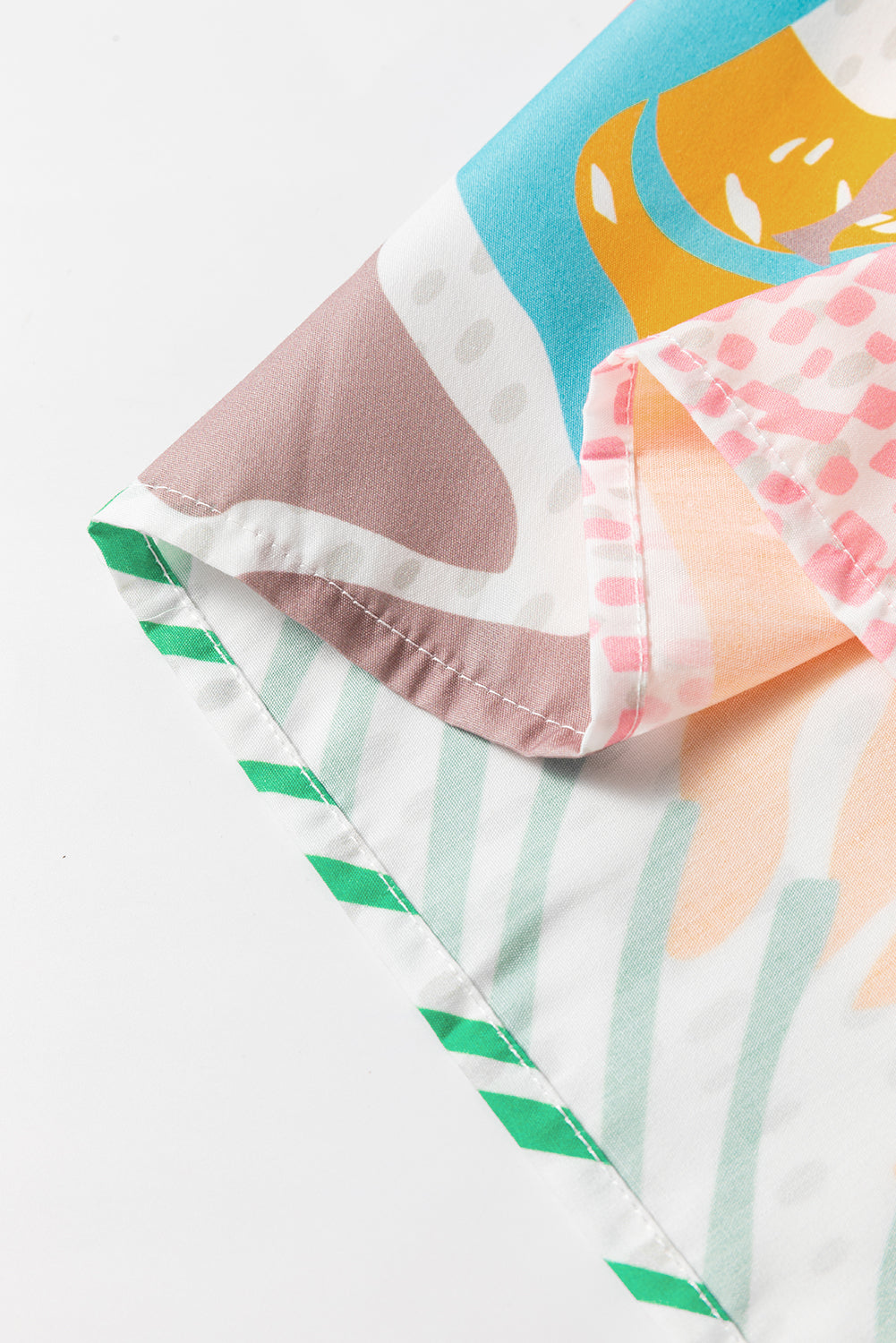 Beige Abstract Smocked Ruffled Lantern Sleeve High Neck Shirt