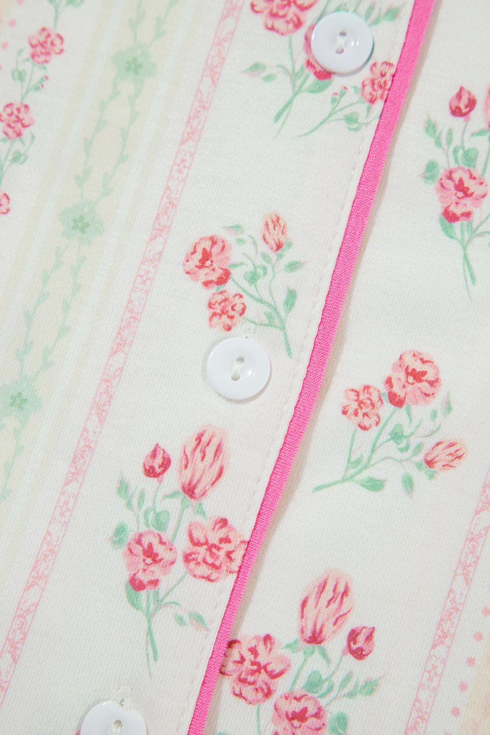 Beige Floral Print Contrast Pipping Short Pajamas Set