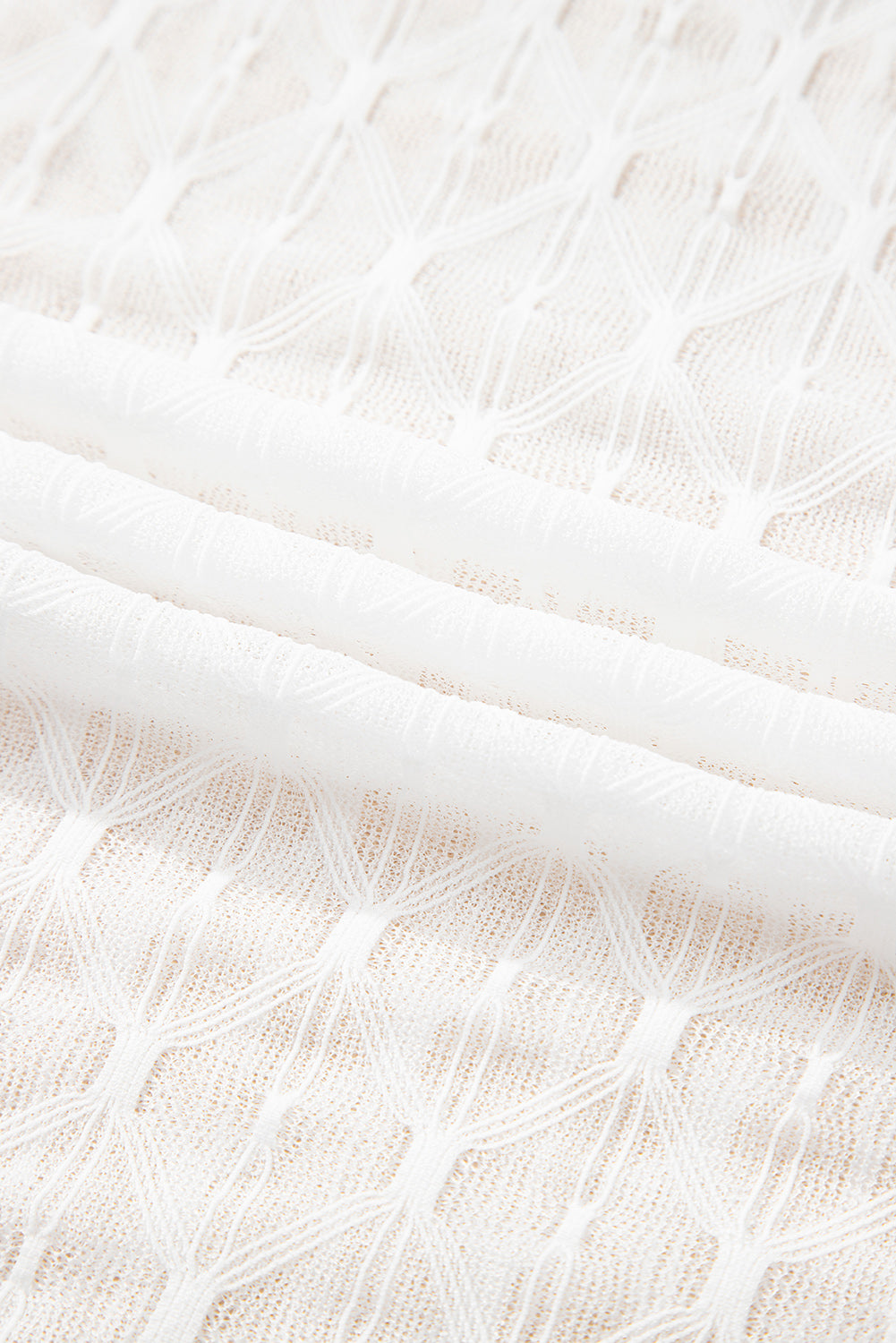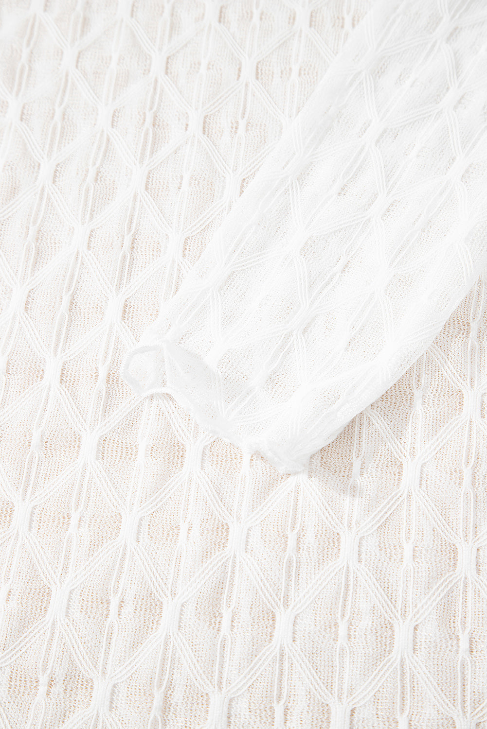 Beige Sheer Mesh Patterned Lettuce Trim Slim Long Sleeve Top