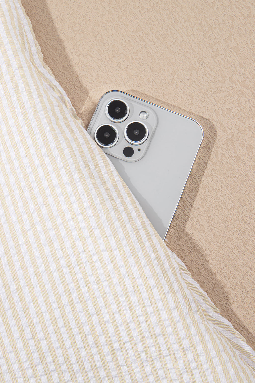 Beige Stripe Seersucker Contrast Round Neck Puff Sleeve T Shirt Dress