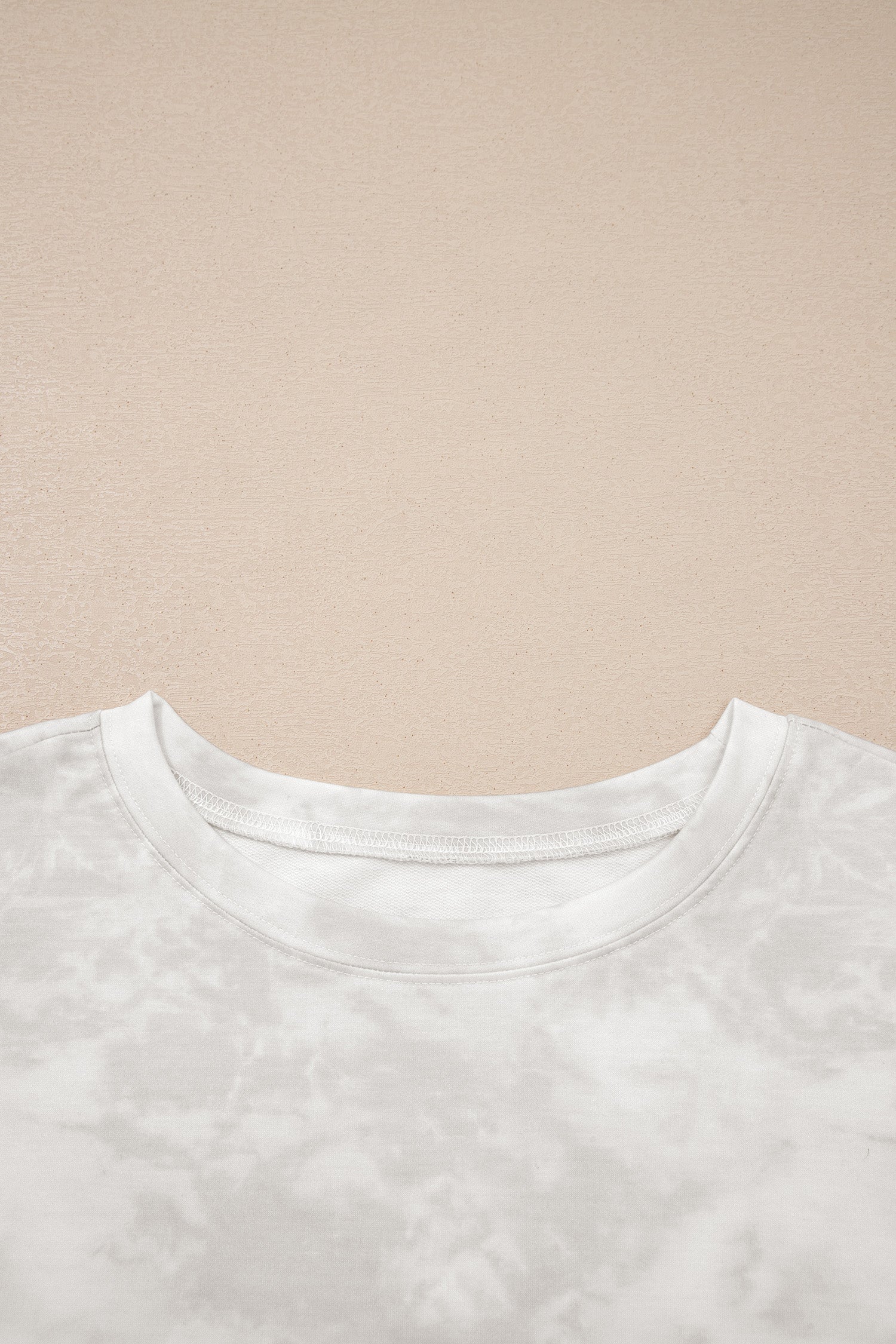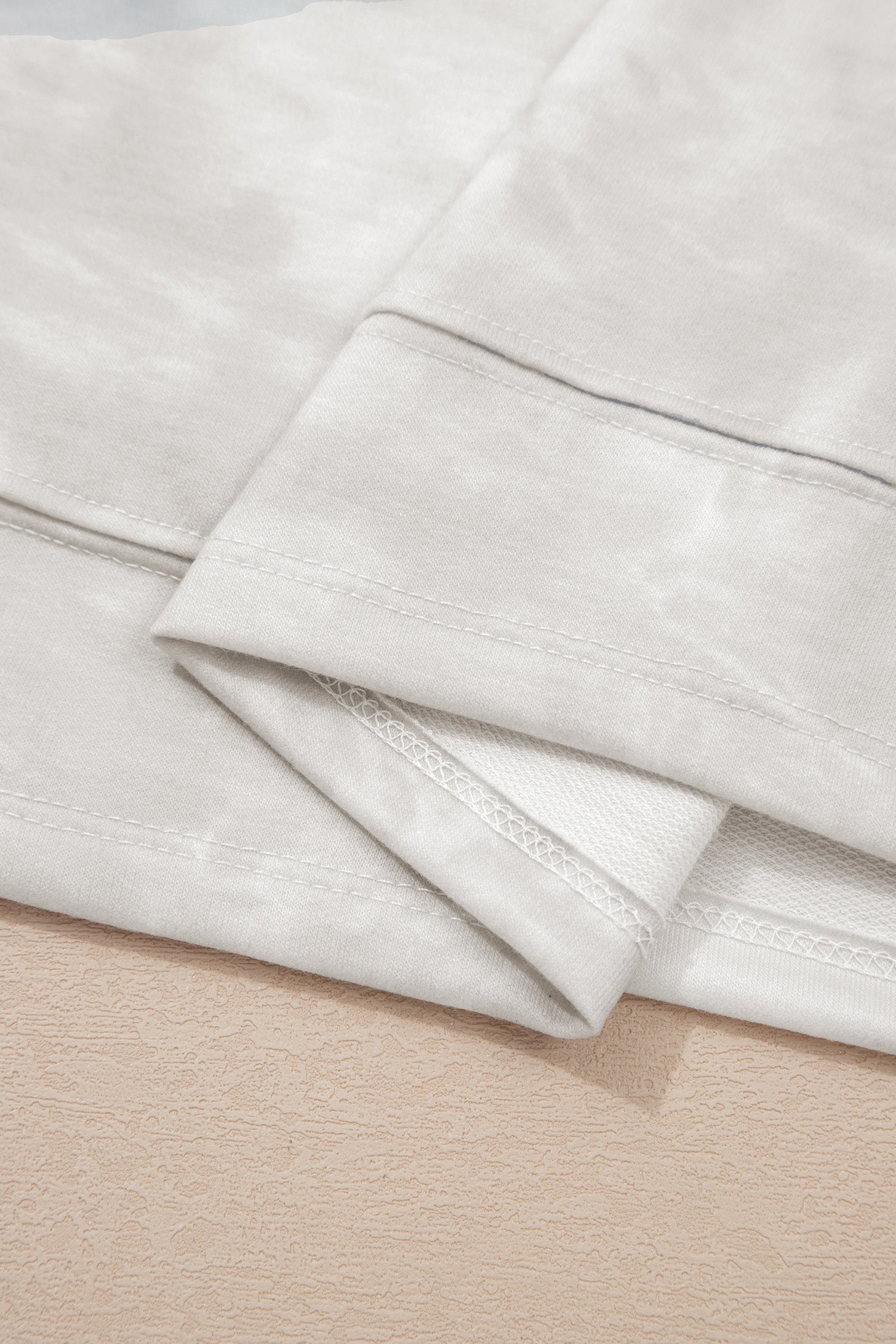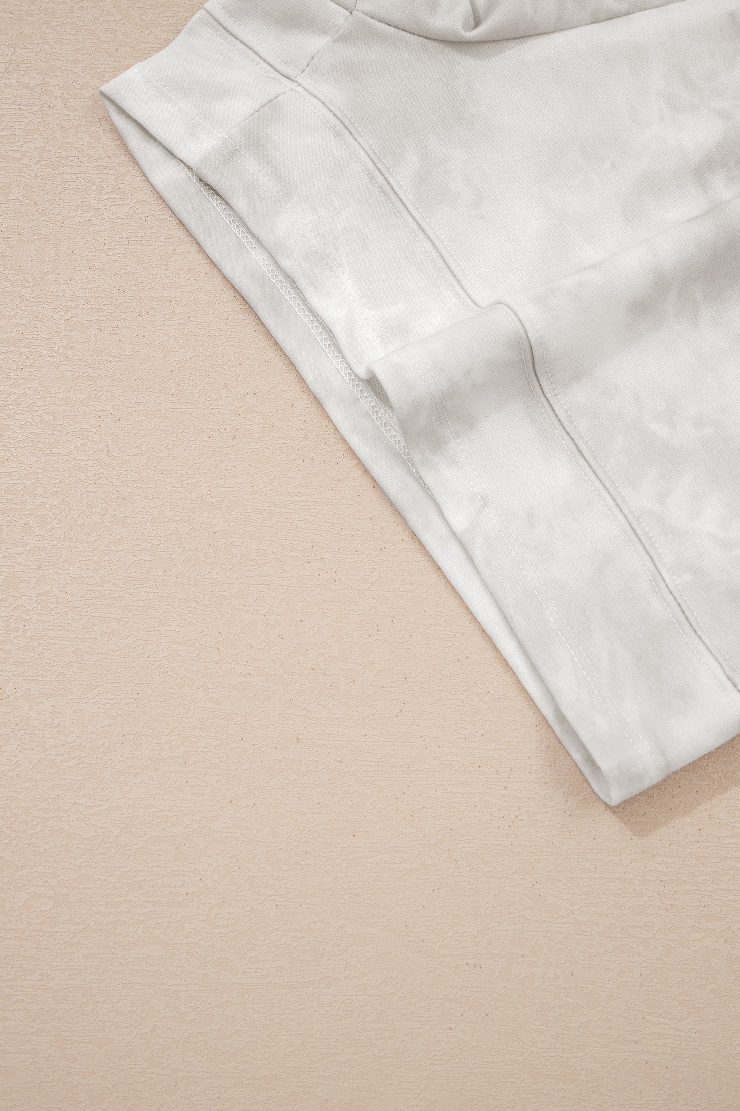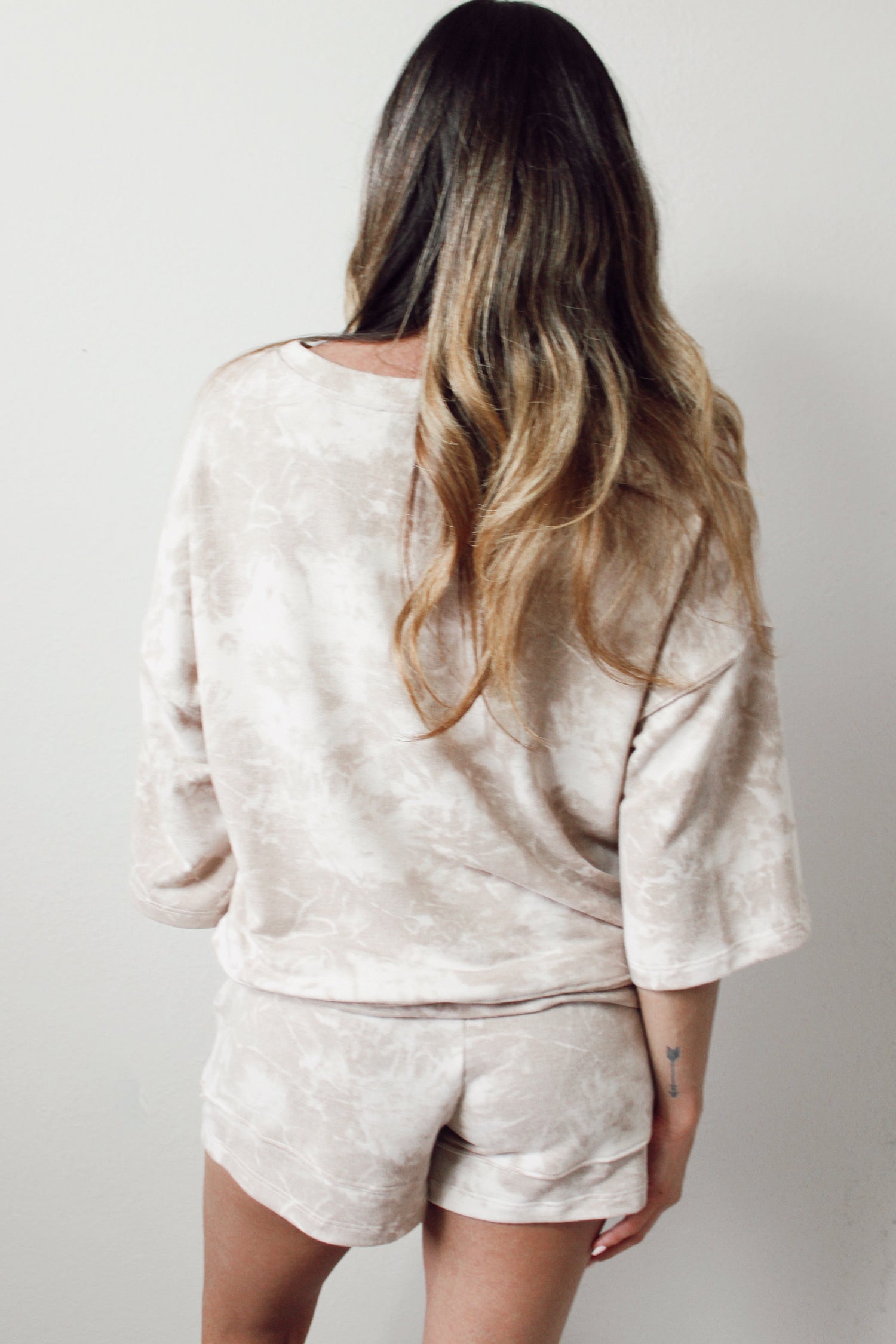 Beige Vintage Tie Dye Bracelet Sleeve Drawstring Elastic Waist 2pcs Short Set