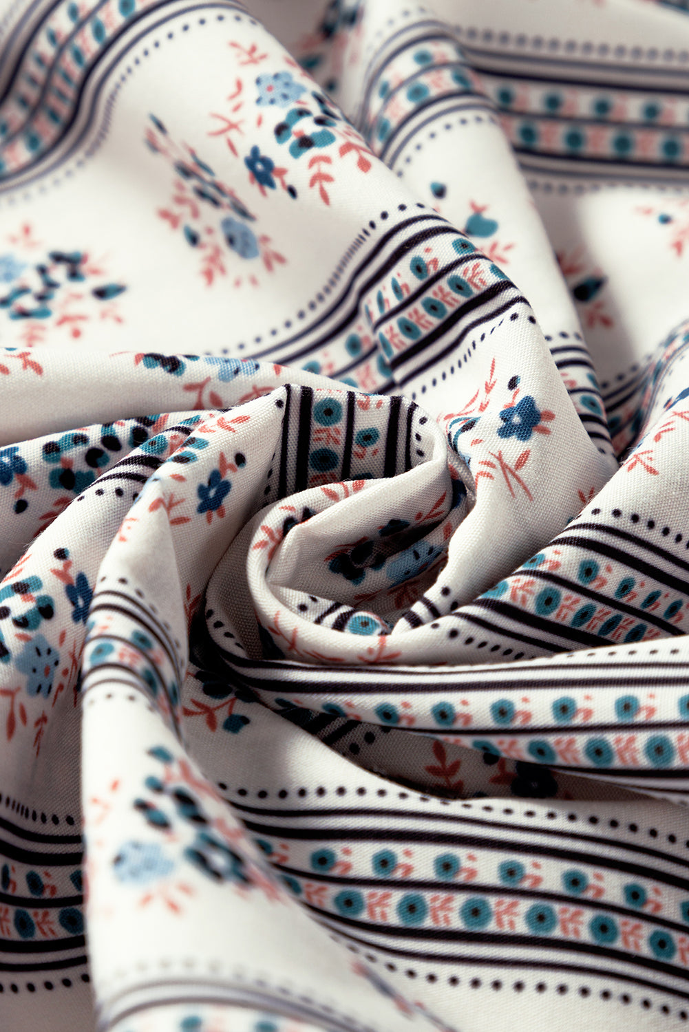 - Make a statement with the captivating combination of floral print and striped patterns.