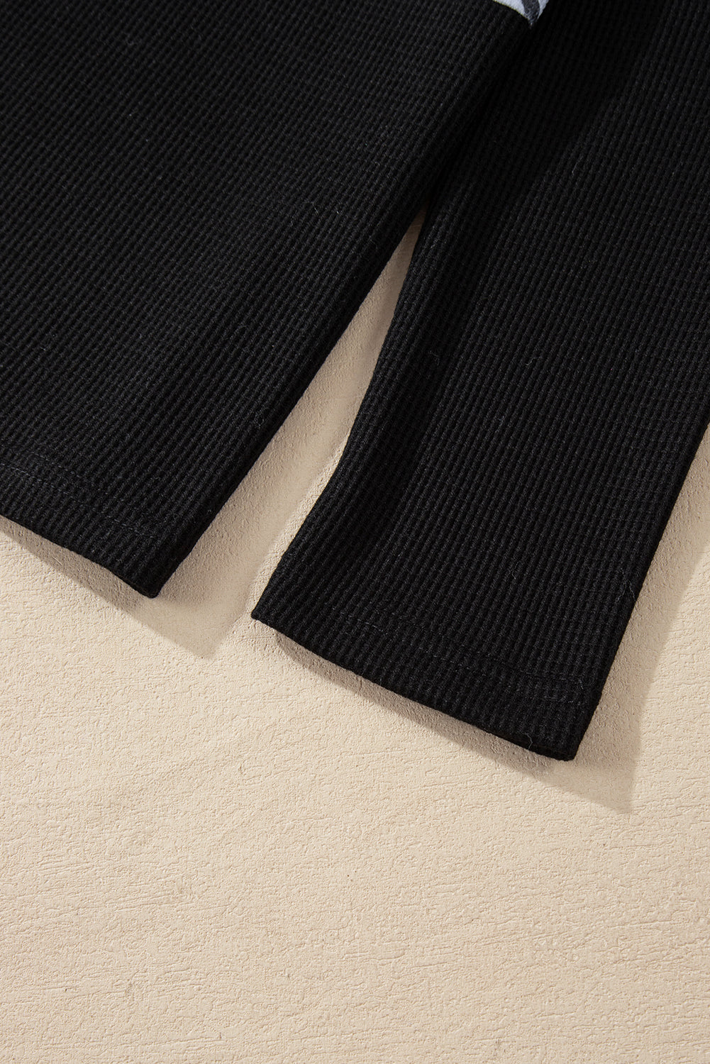 Black Cheetah Textured Patchwork Buttoned Round Neck T Shirt