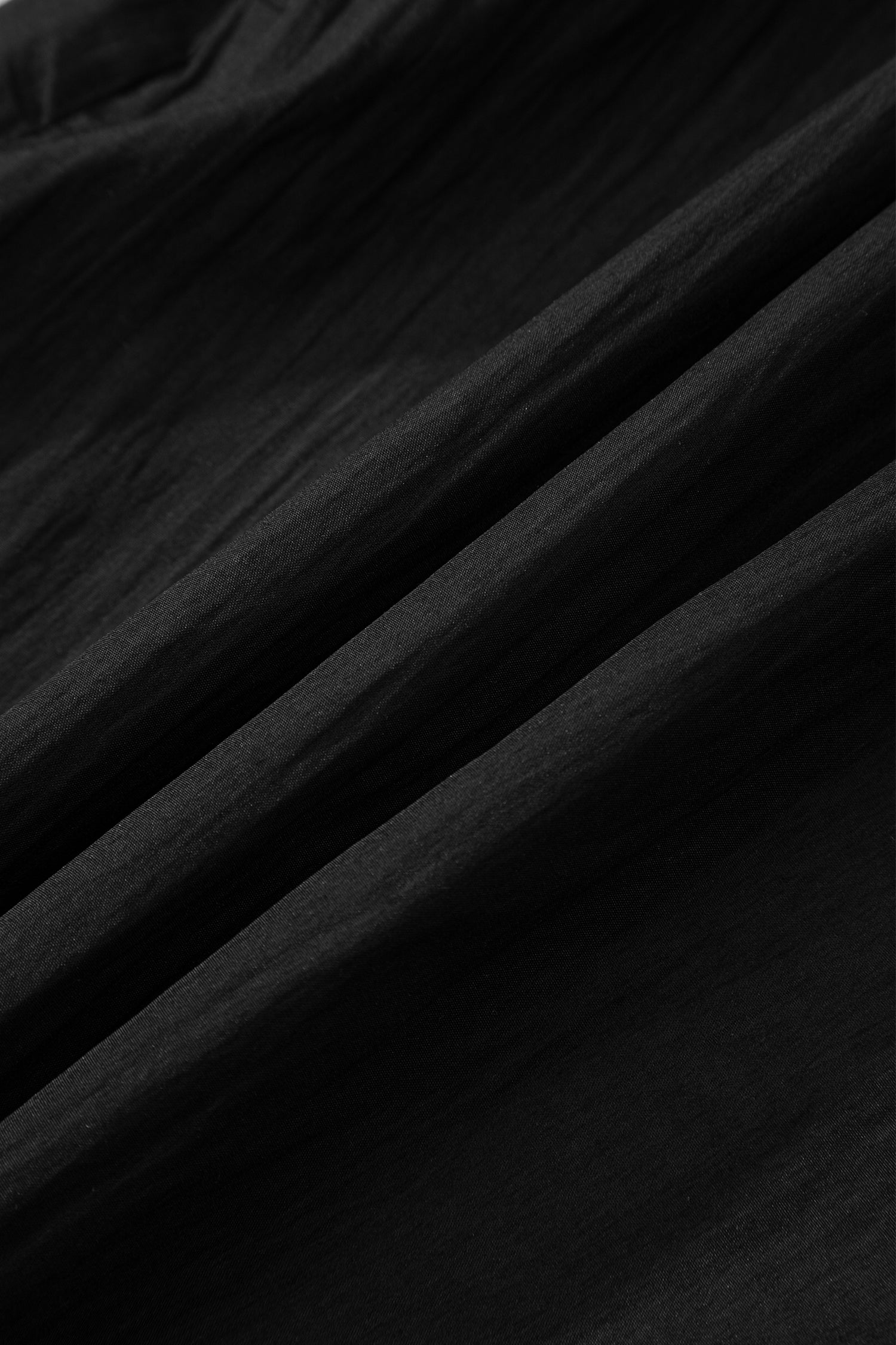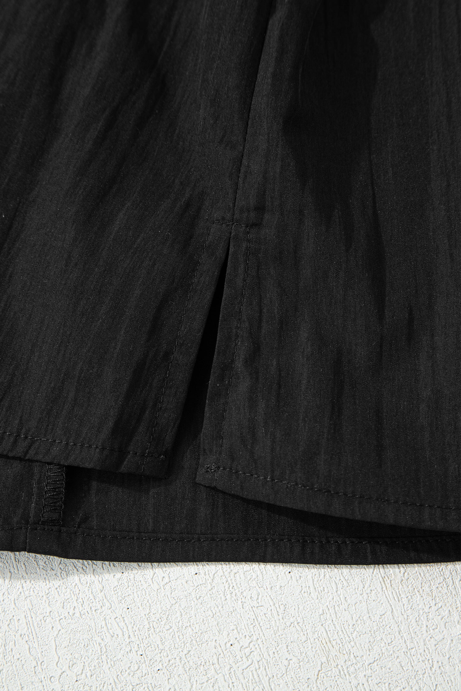 Black Contrast Trim Dual Ruffle Short Sleeve Textured Blouse