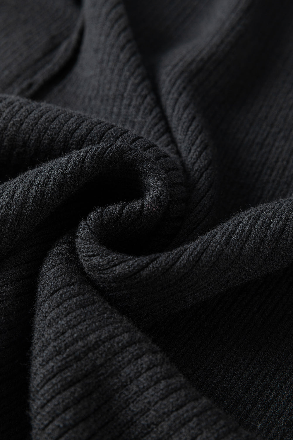 Black Crochet Lace Sleeve Ribbed Knit Cardigan