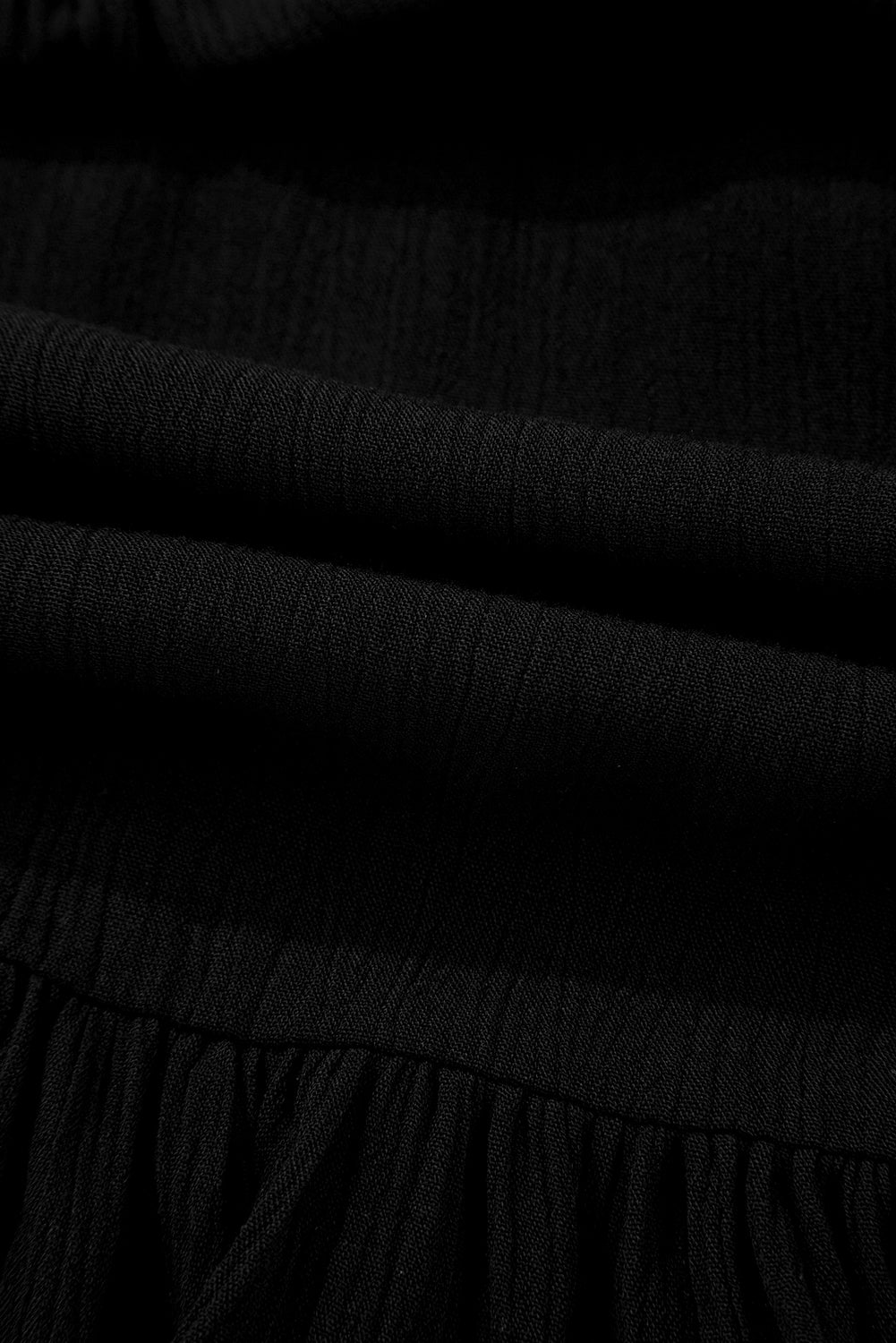 Black Floral Embroidery Ruffled Spaghetti Straps Tank Top