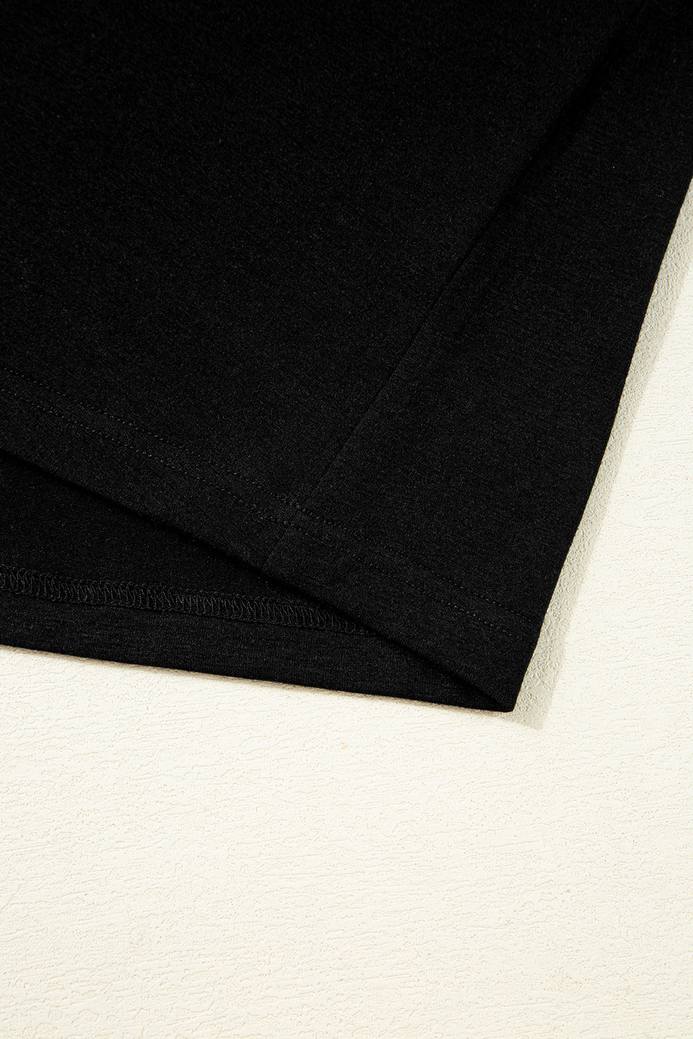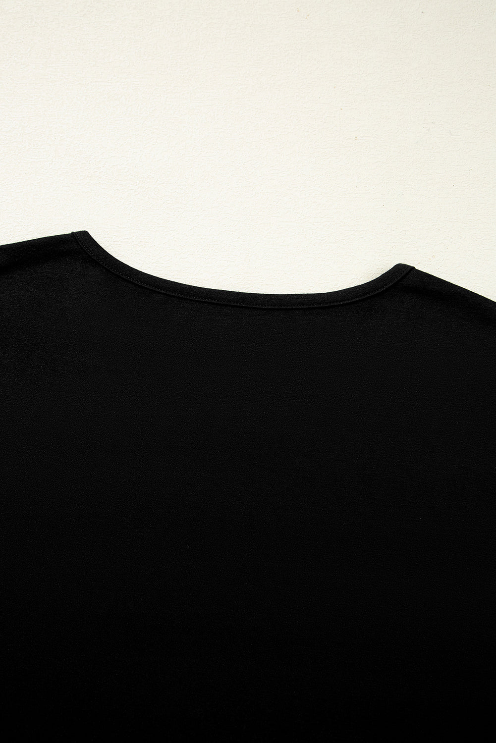 Black Floral Mesh Patchwork Loose V Neck Plus Size T Shirt