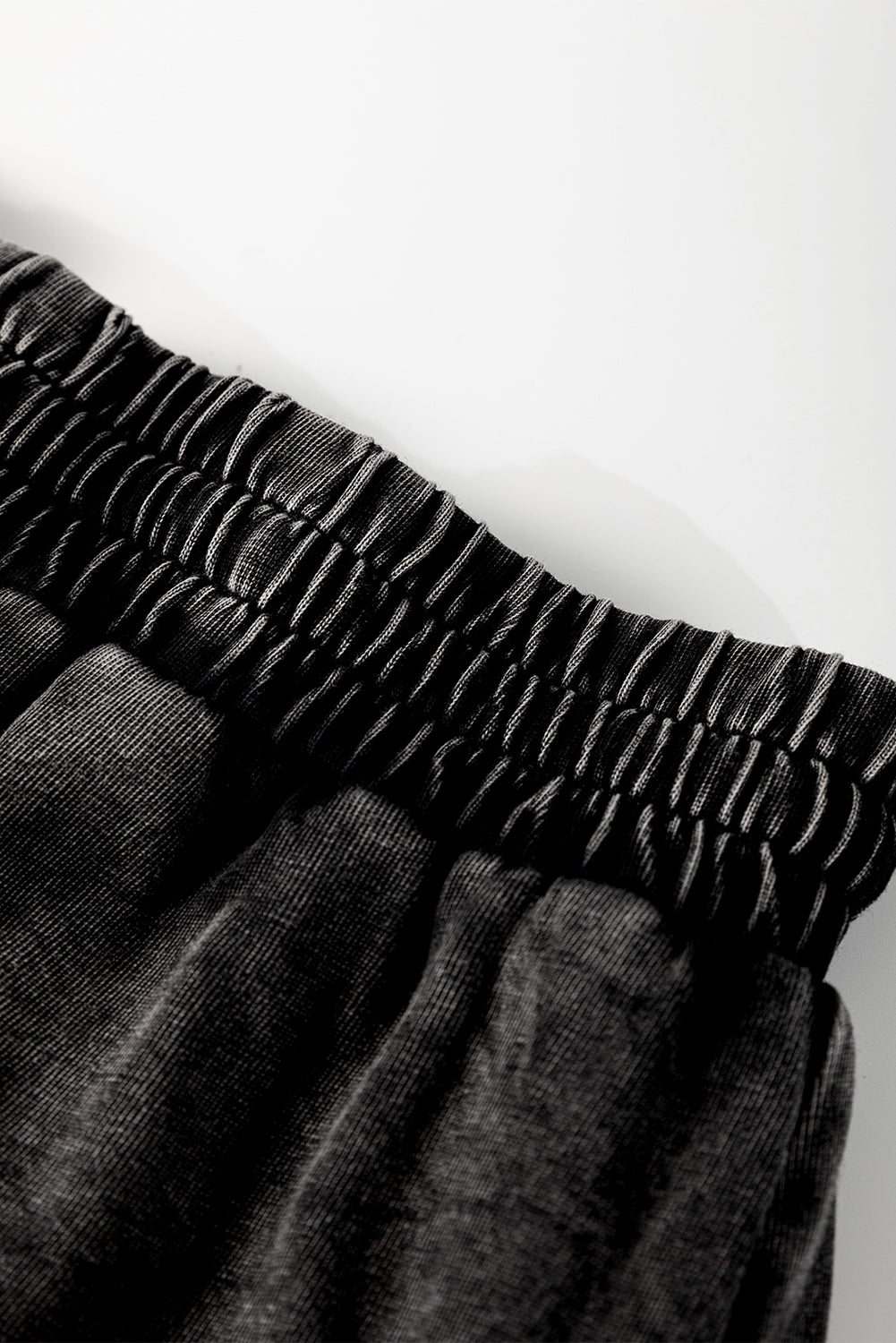 Black Mineral Wash French Terry Drawstring Elastic Waistband Casual Shorts