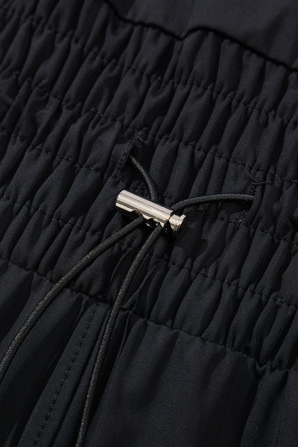 Black Plain Sleeveless Loop Drawstring Cinched Waist Romper
