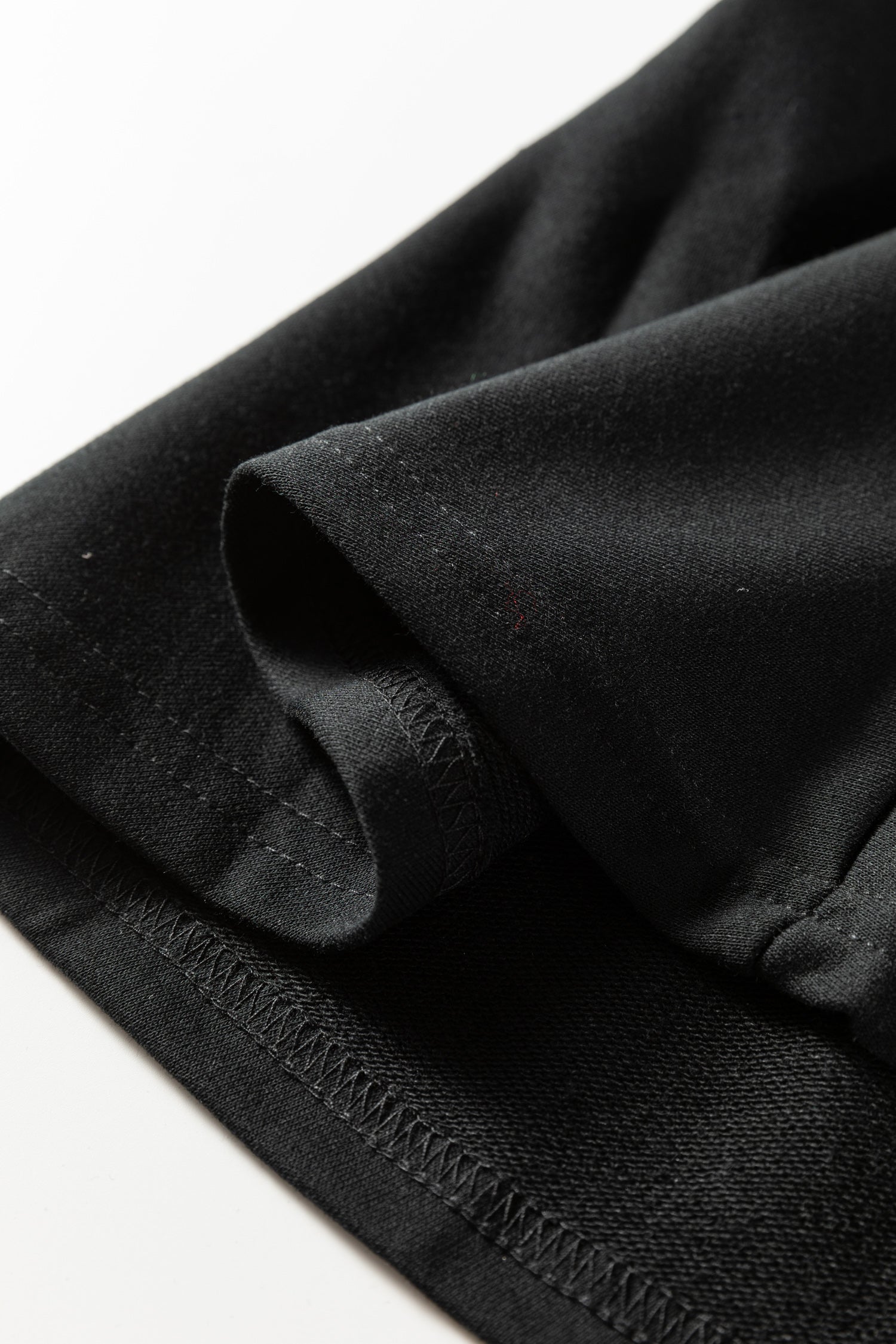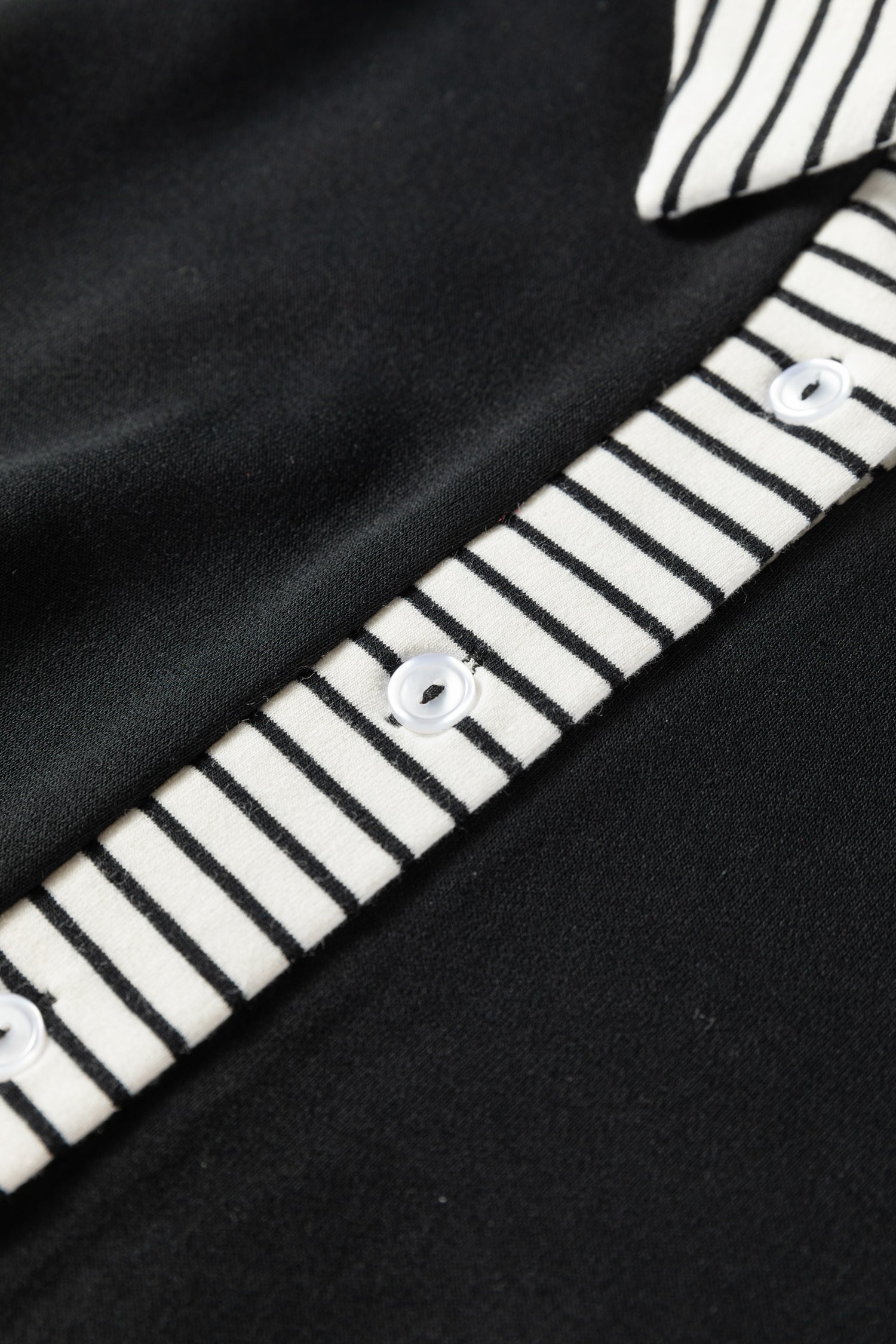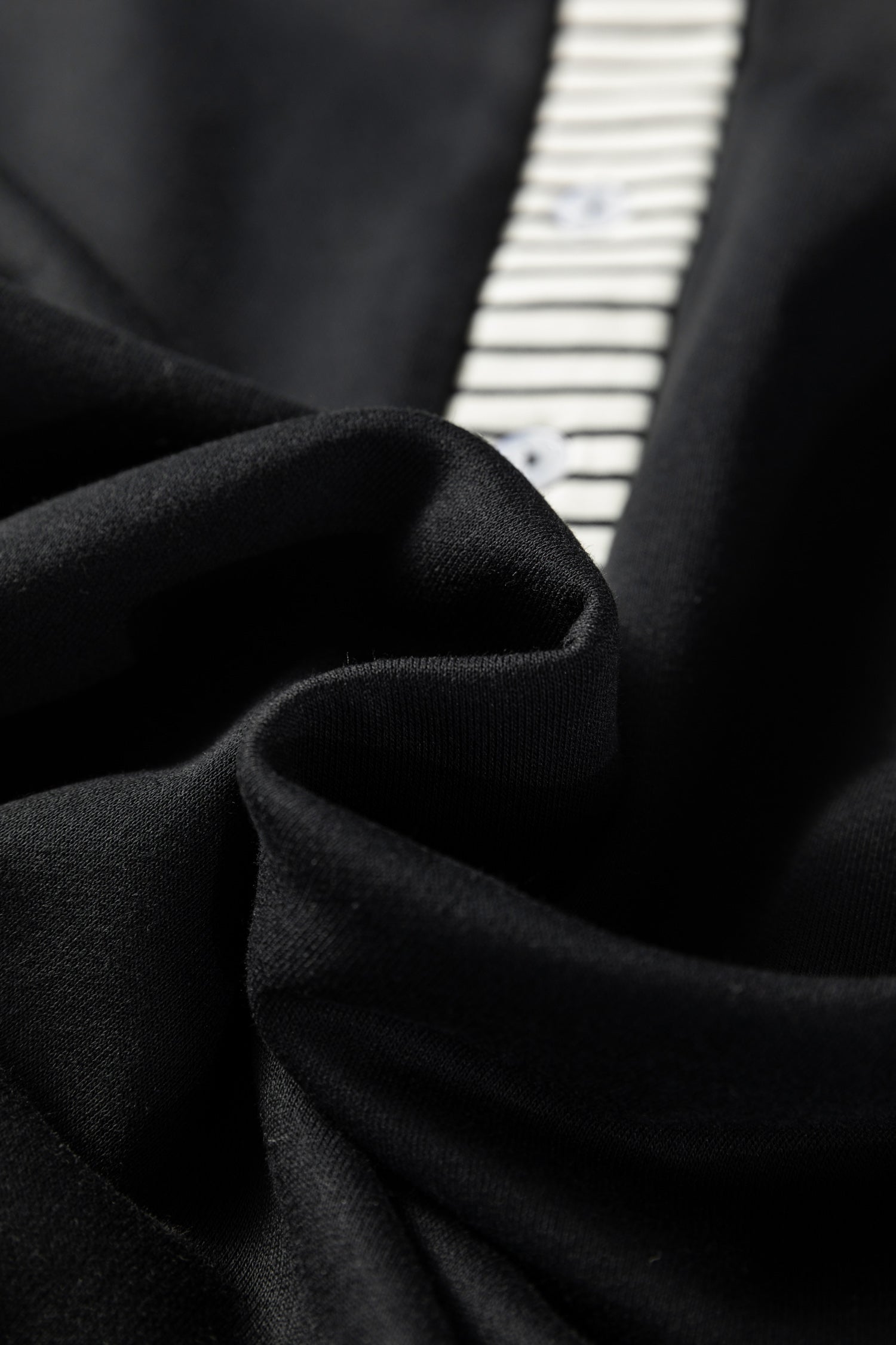 Black Plus Size Striped Cuffs Polo Collar Patchwork Long Sleeve Ruffle Hem Dress