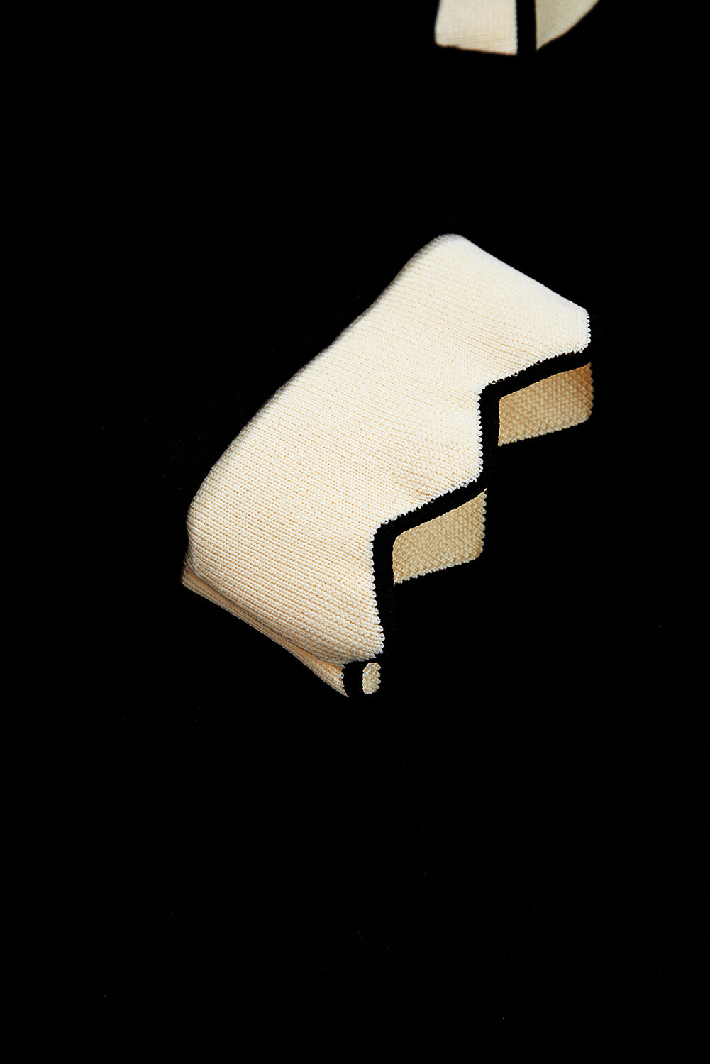 Black Scallop Trim Color Block Long Sleeve Collared Top