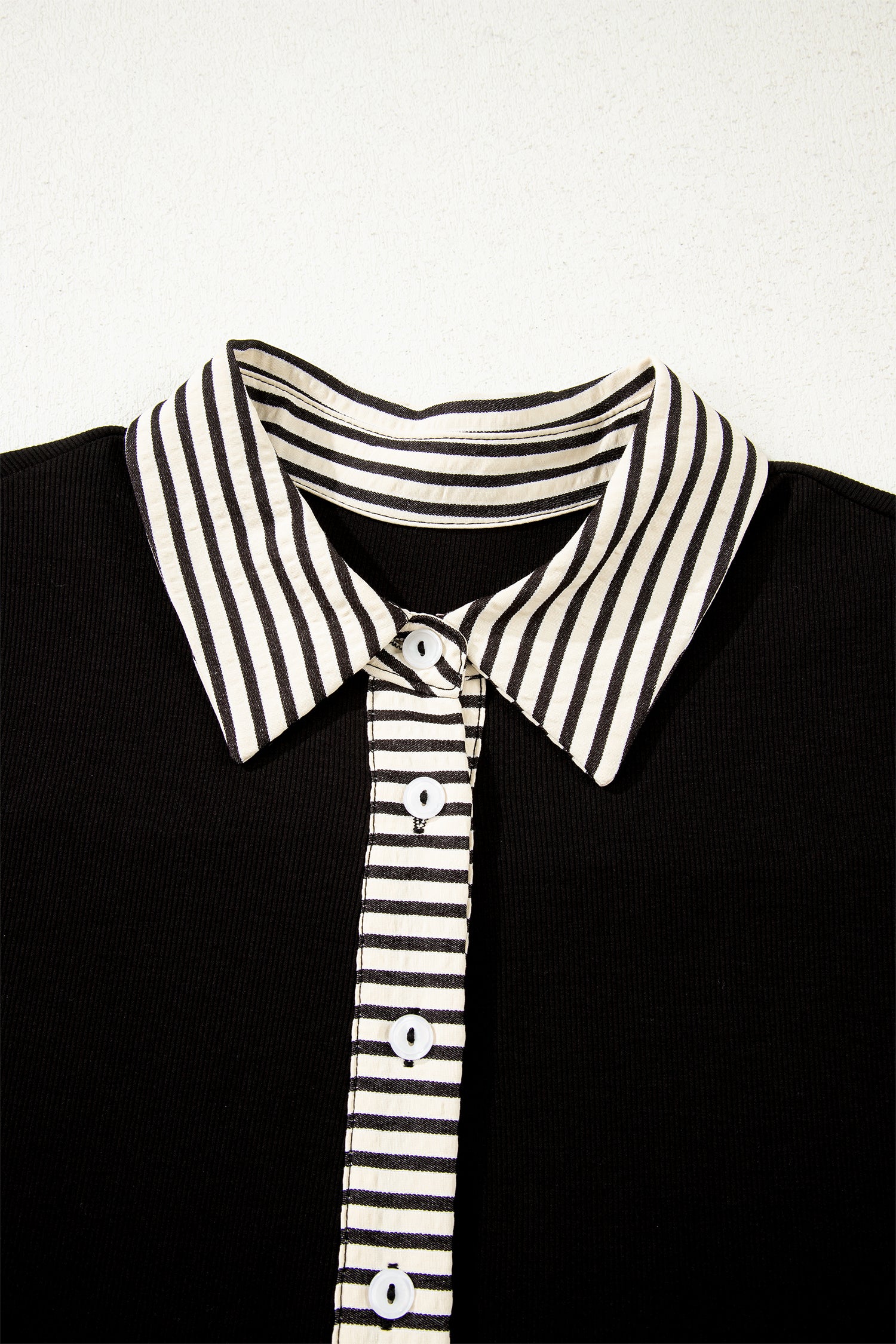 Black Stripe Detail Polo Collar Half Buttons Tied Short Sleeve Shift Mini Dress