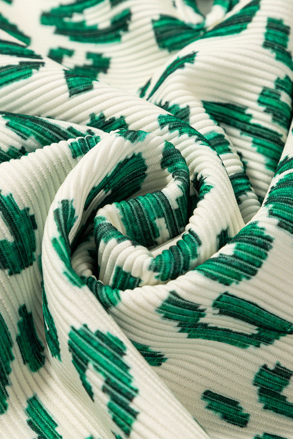 Blackish Green Leopard Print Mock Neck Puff Sleeve Top