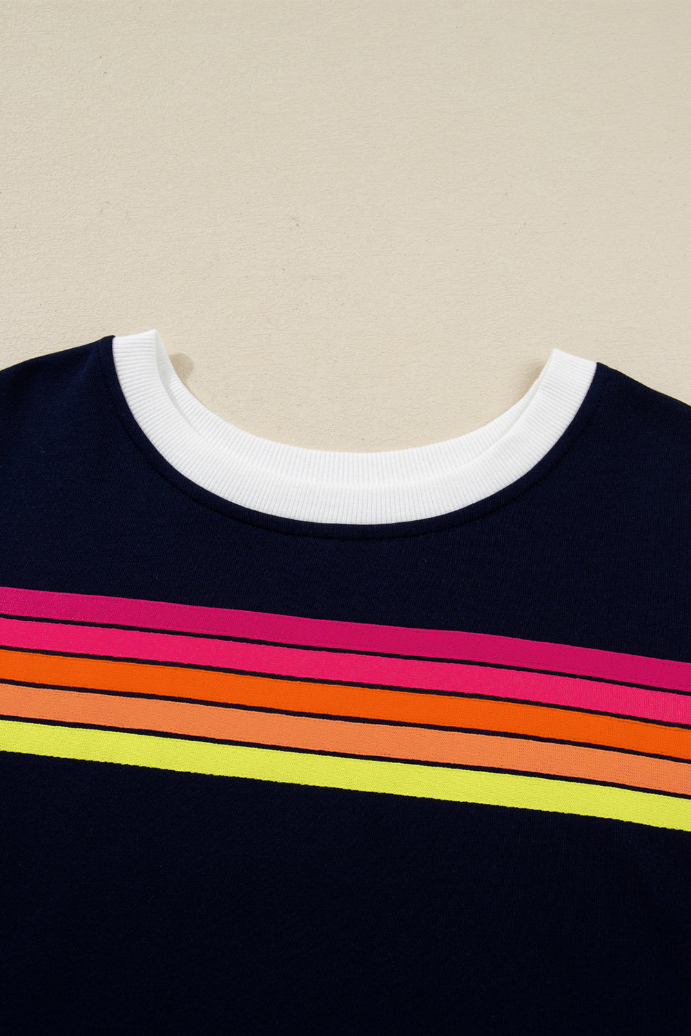 Bluing Colorful Striped Accent Varsity Long Sleeve Pullover and Shorts Matching Set
