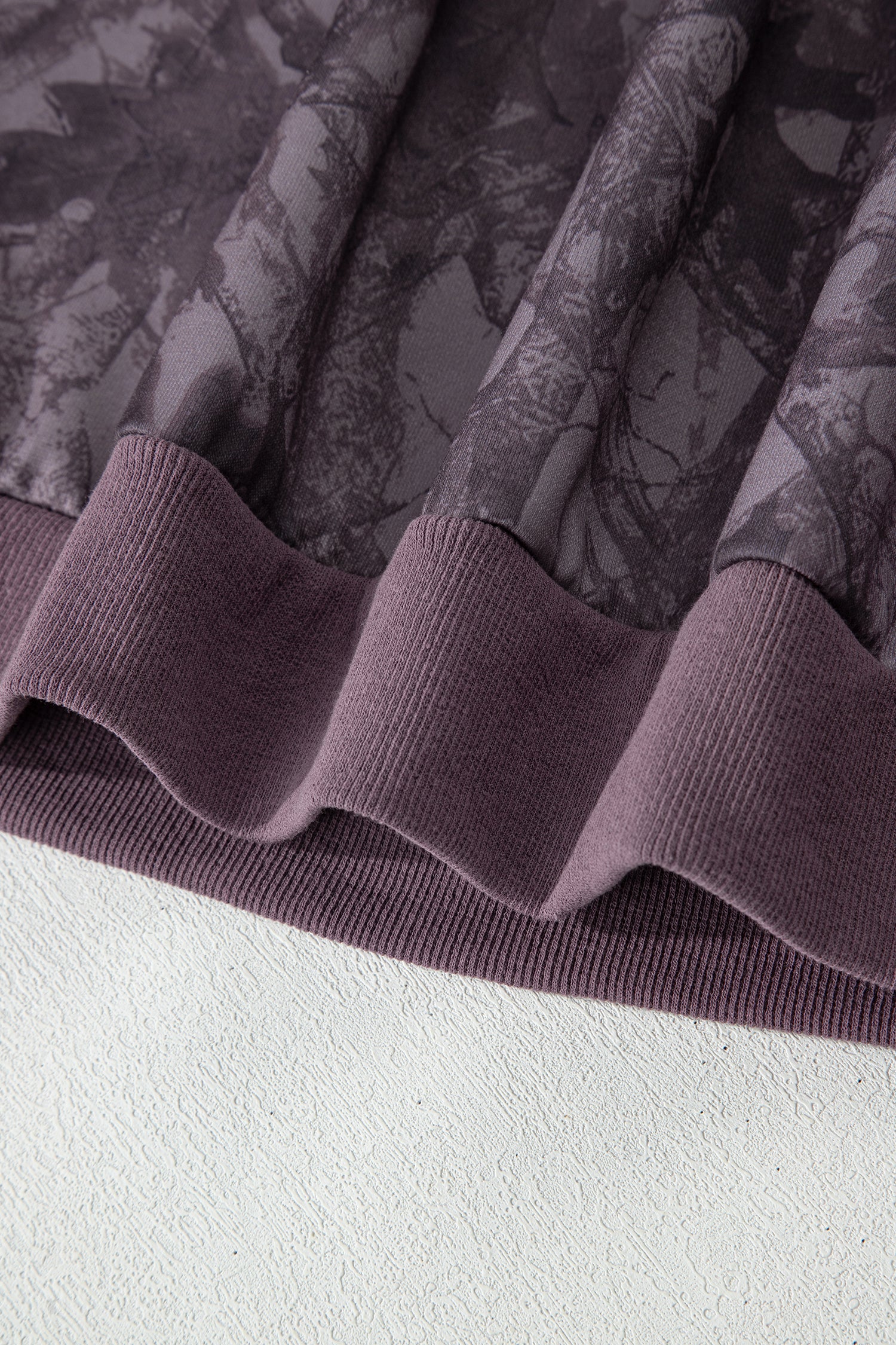 Brown Abstract Woodland Camo Print Baggy Pullover Drawstring Shorts Set