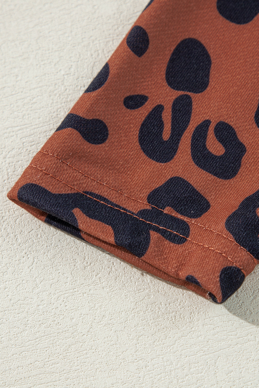 - This hoodie features a textured knit fabric and leopard print silhouette