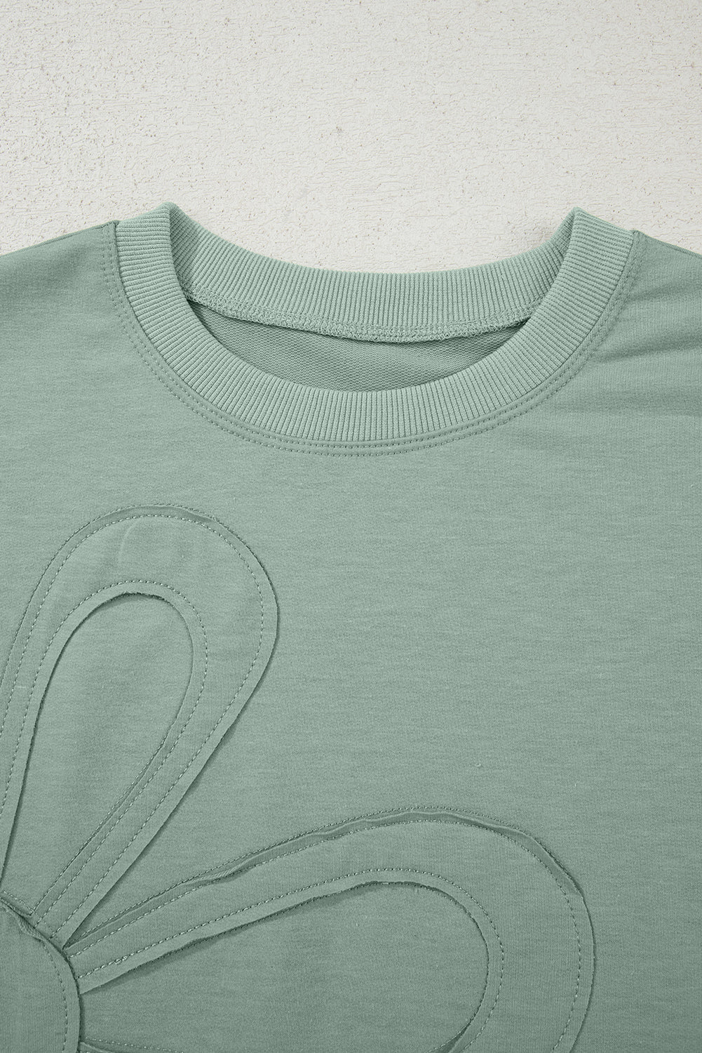 Clearly Aqua Floral Patched Half Sleeve Tunic Top