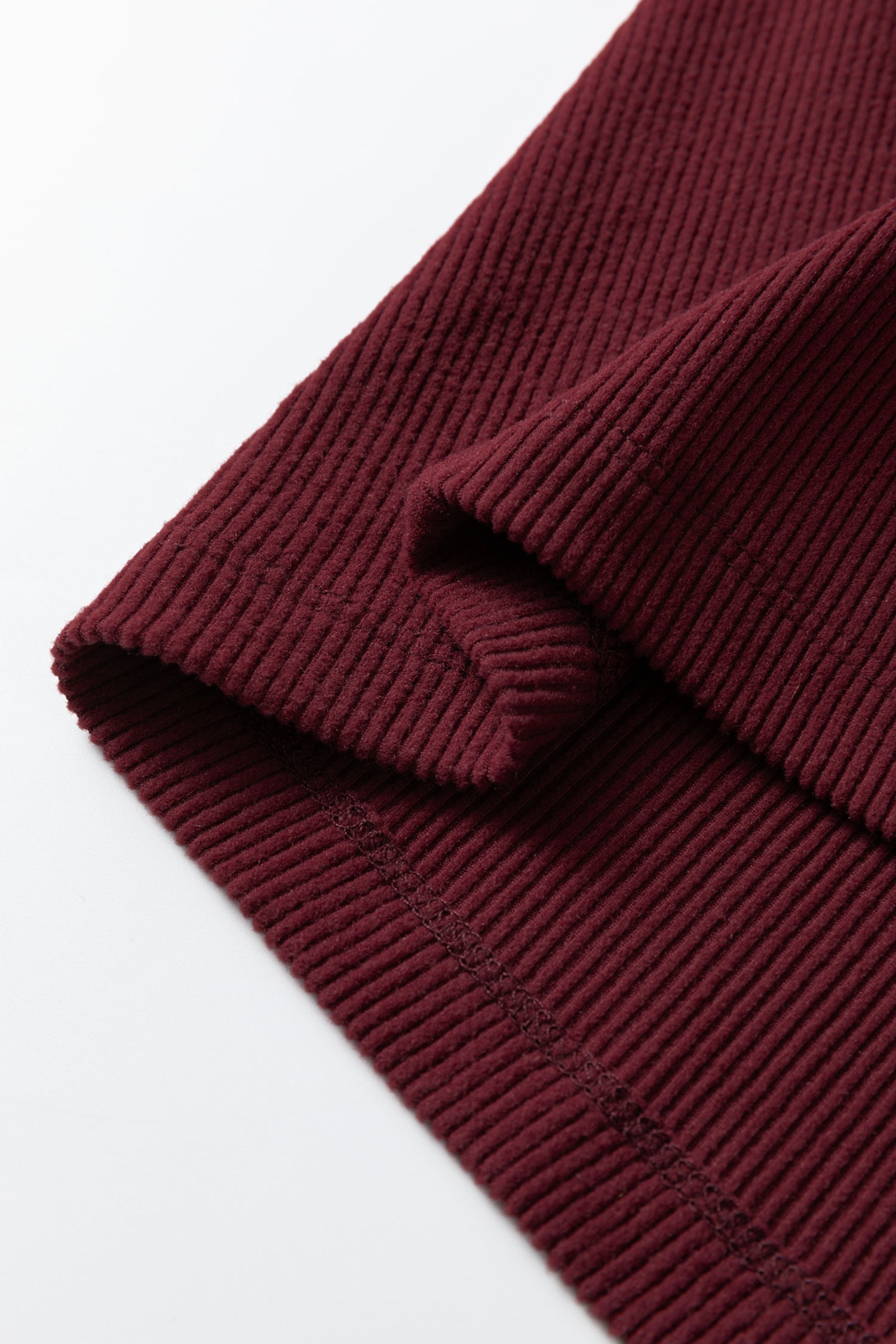 Coffee Ribbed Solid Color U Neck Cropped Long Sleeve Top