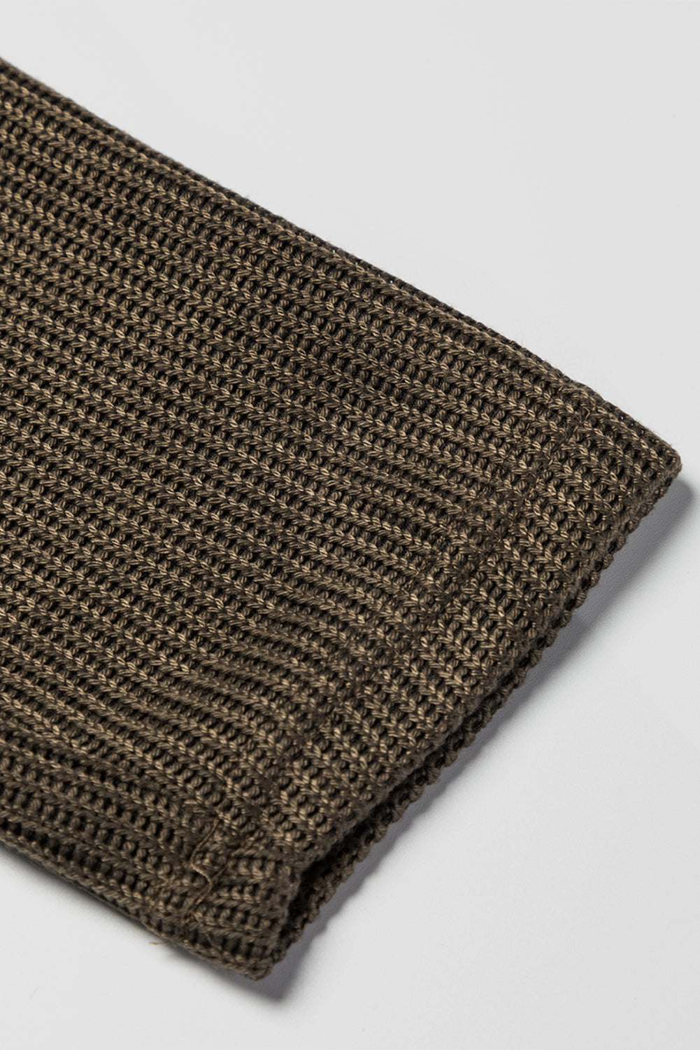 Dark Brown Button Up Contrast Knitted Sleeves Hooded Jacket