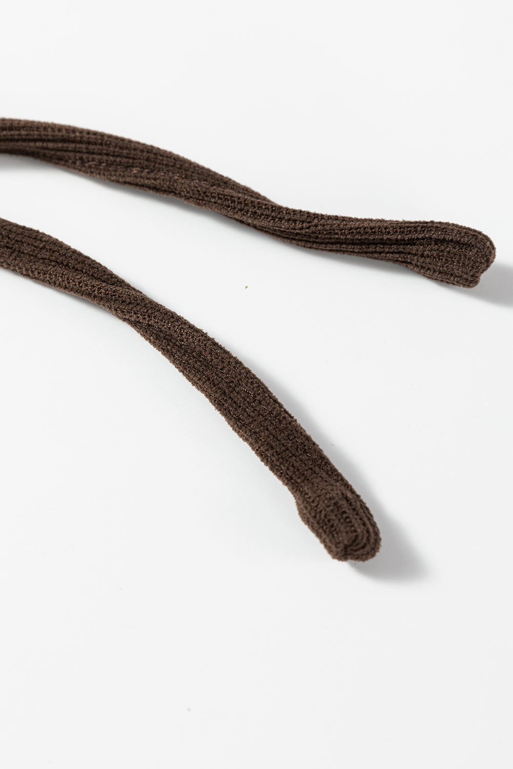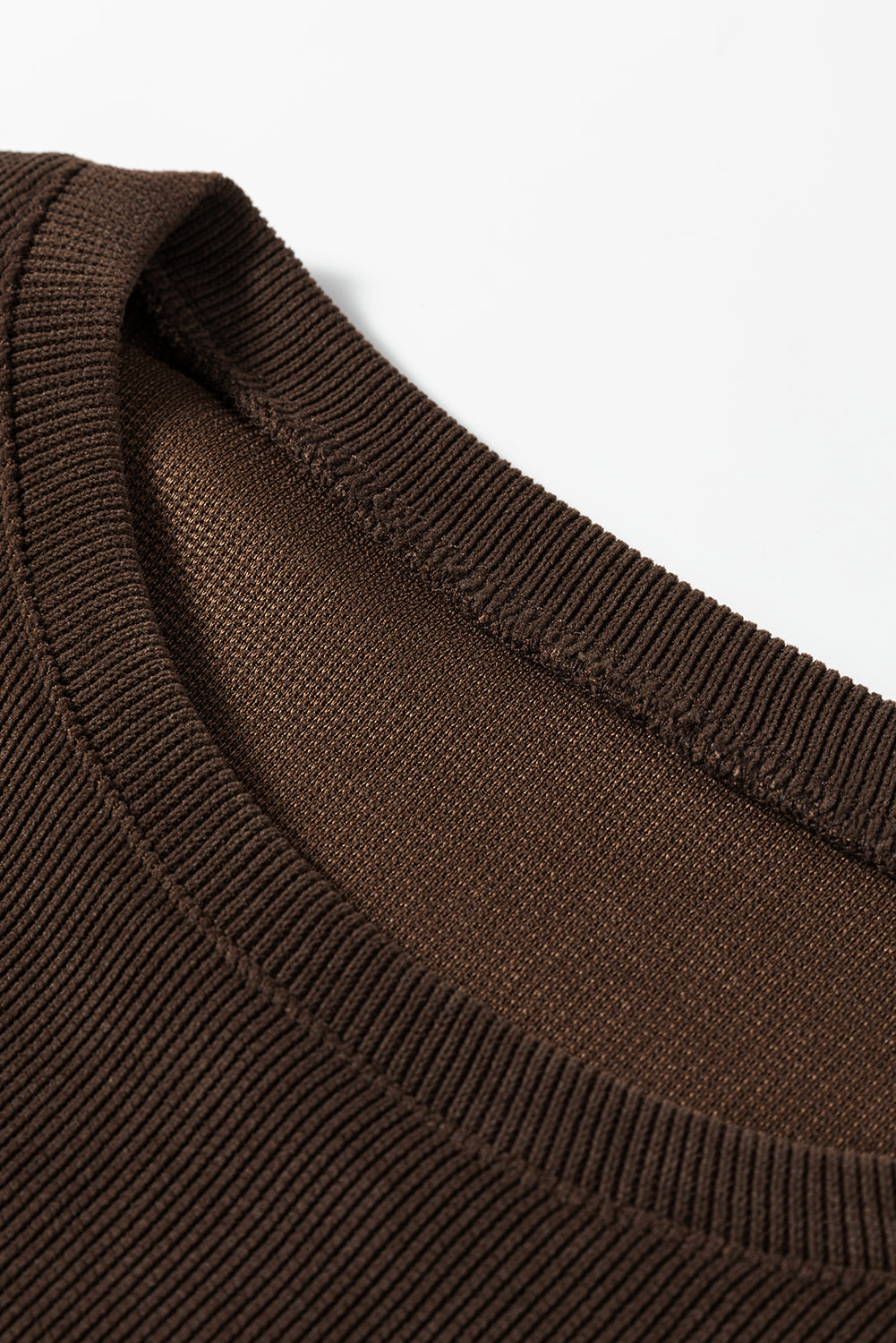 Dark Brown Solid Color Textured Knit Drop Shoulder Pullover Drawstring Shorts Set