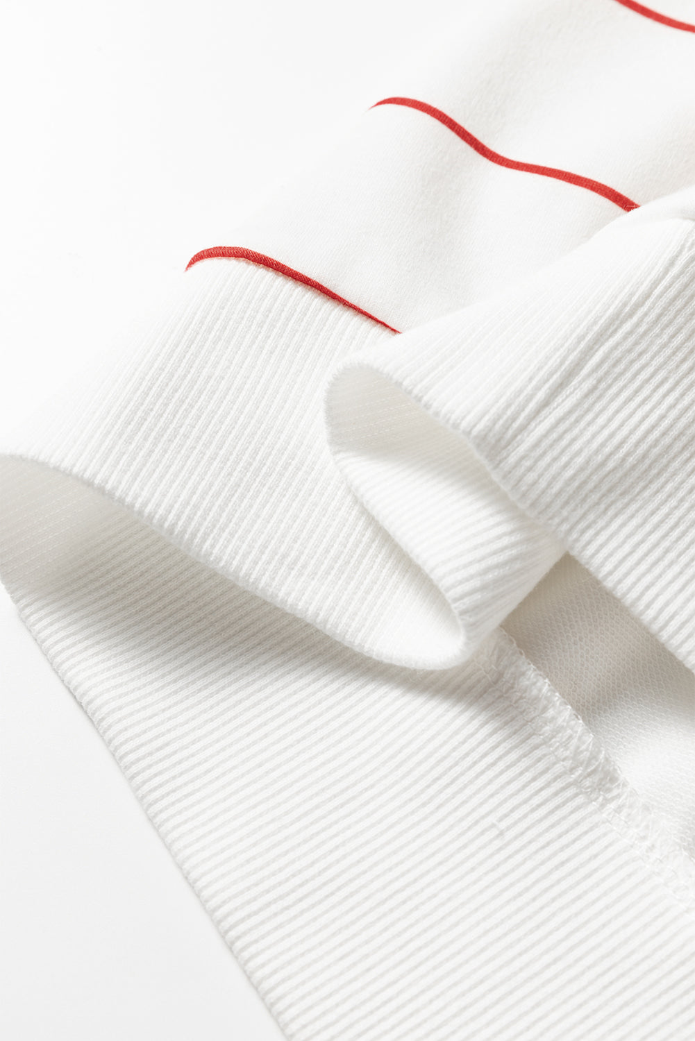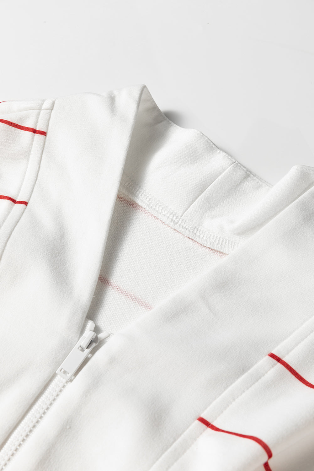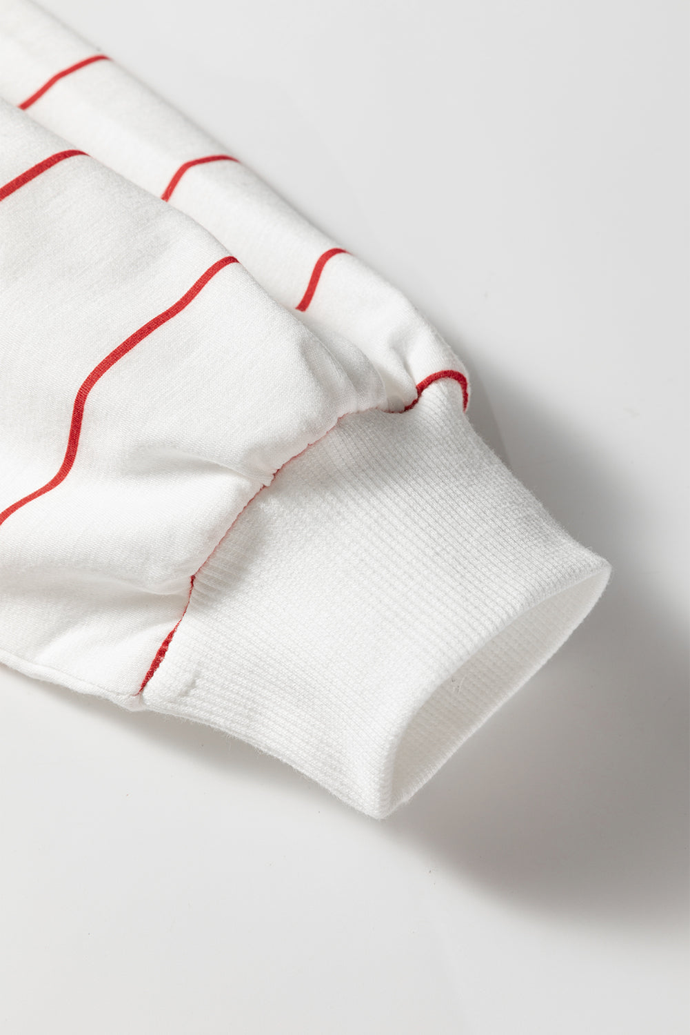 Fiery Red Zip V Neck Casual Stripe Print Drop Shoulder Long Sleeve Top