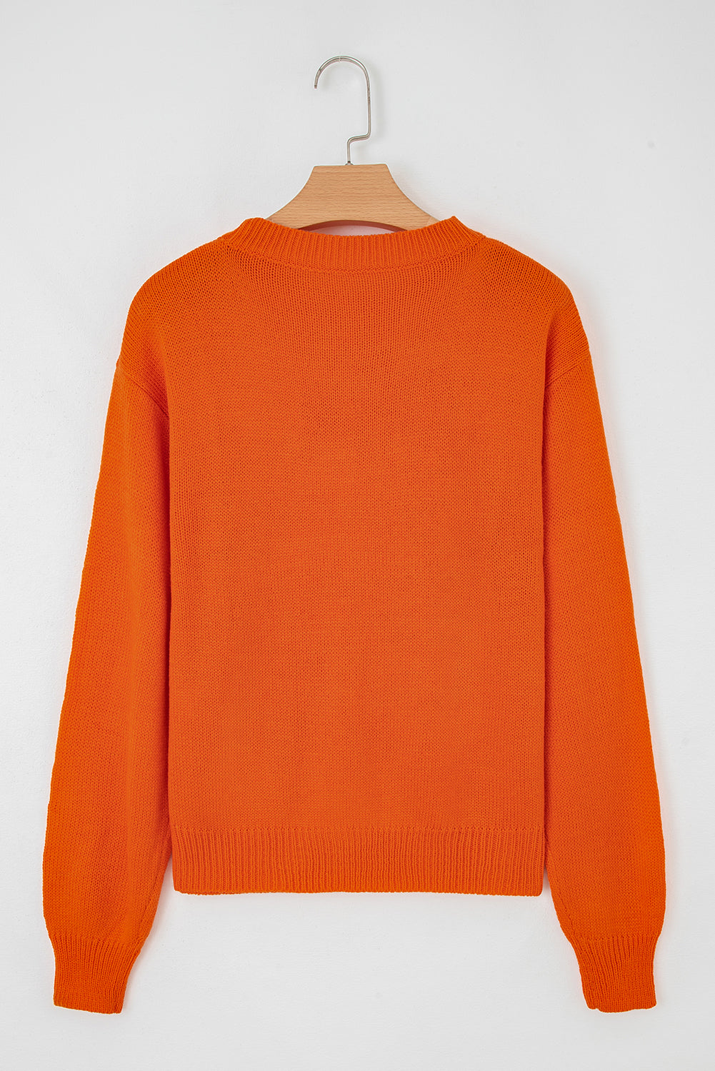 Flamingo Halloween Spooky Face Hollowed Pattern Casual Sweater