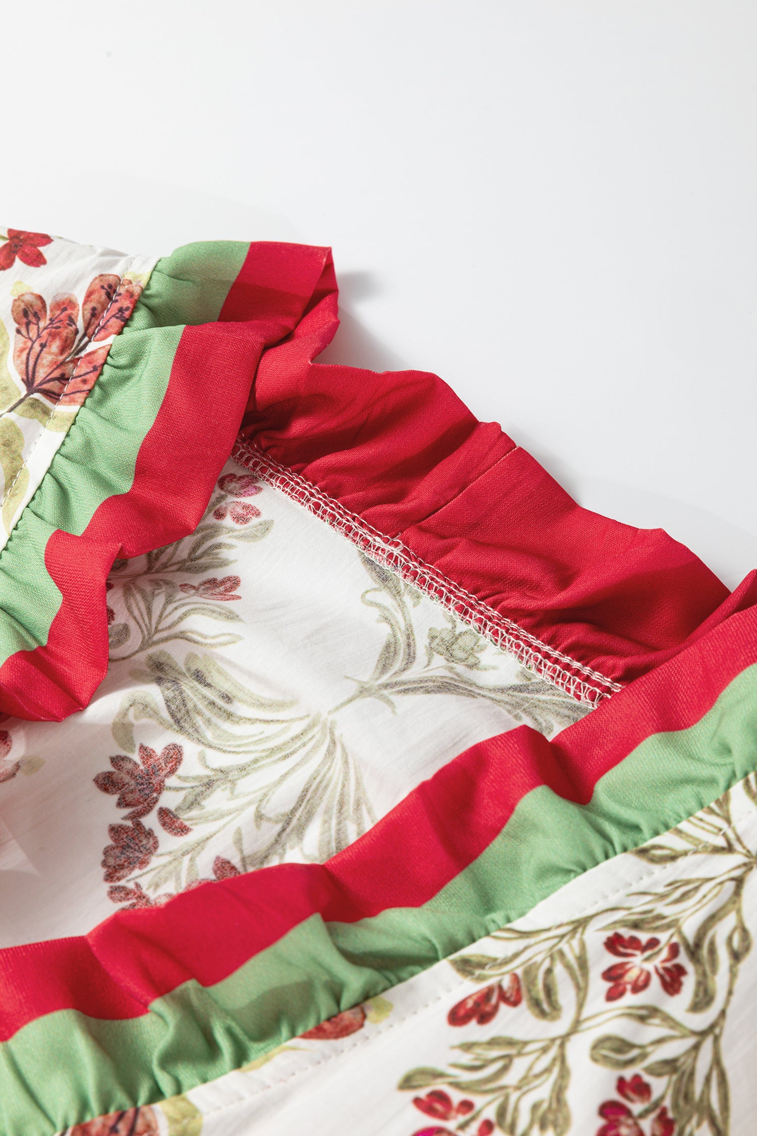 Floral Print Frilled Color Block Trim V Neck Long Sleeve Peplum Top