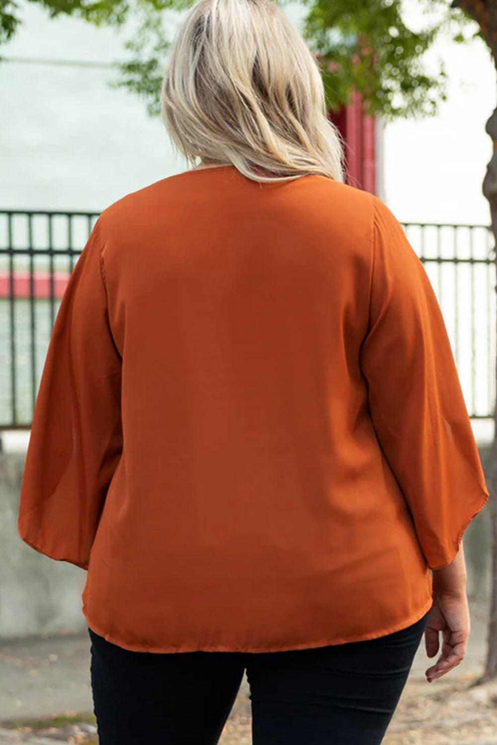 Gold Flame Plus Size Solid Wrapped Ruffled Sleeve V Neck Blouse