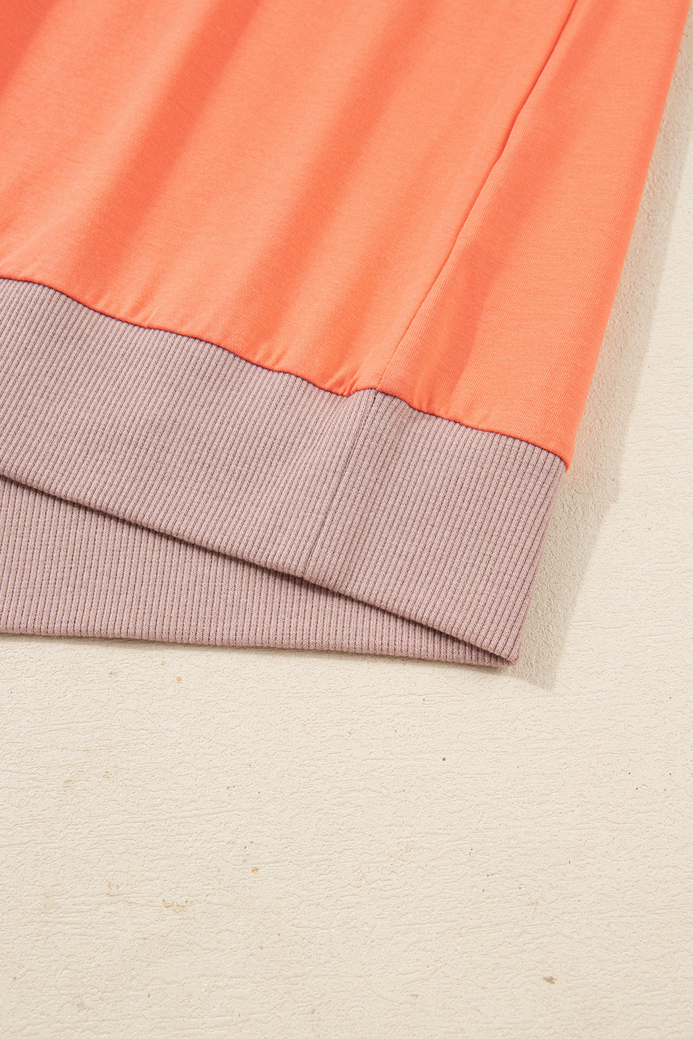 Grapefruit Orange Plaid Flower Waffle Patched Plus Size 3/4 Sleeve Top