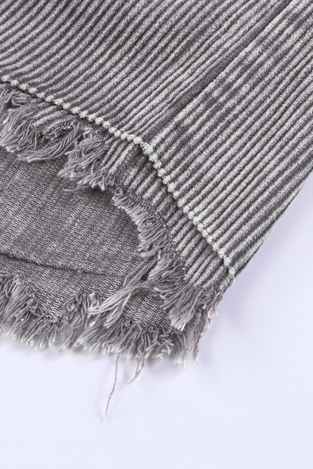 Gray Color Block Button Down Hooded Corduroy Jacket