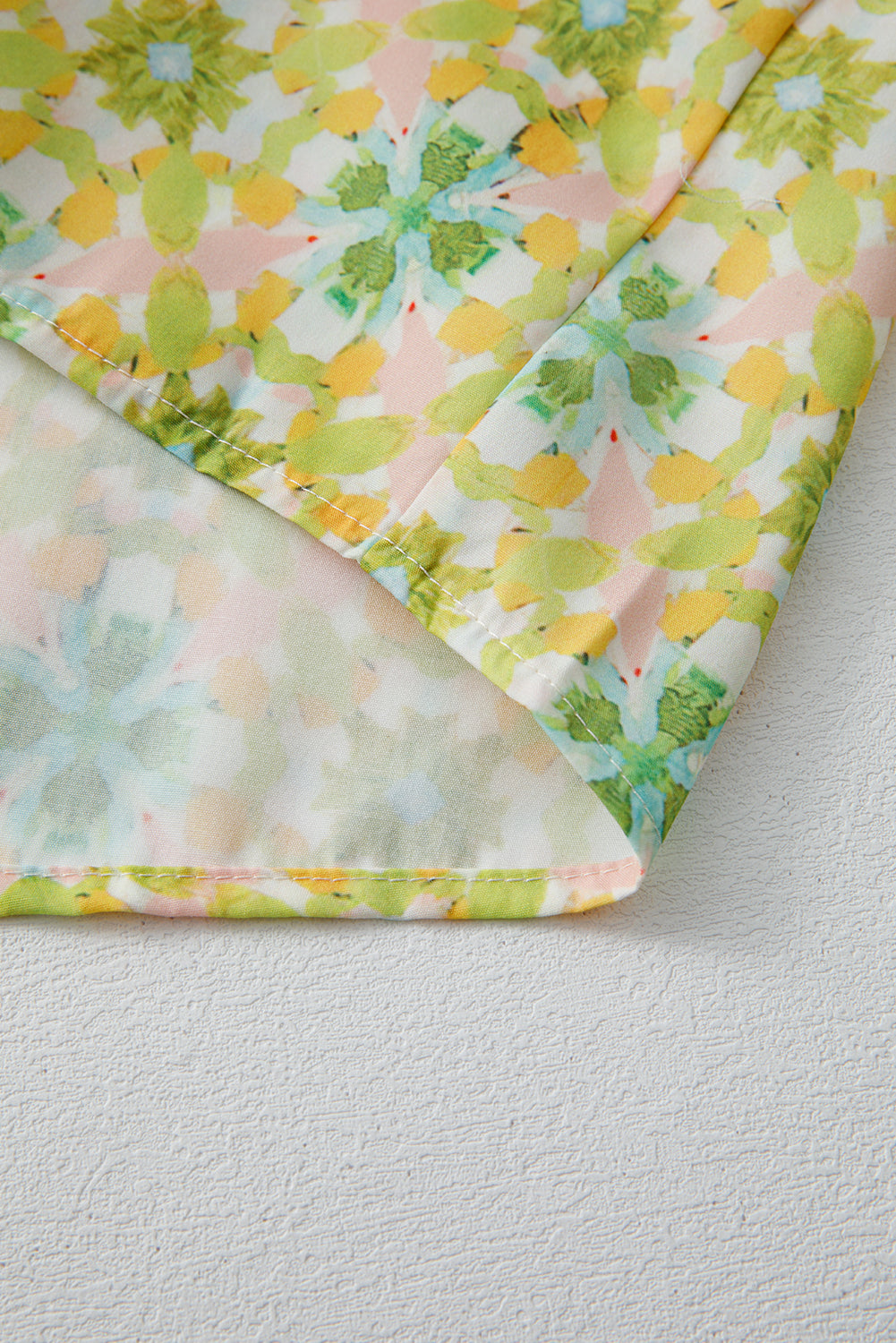 Green Boho Floral Print Frilly Detail Puff Sleeve Shirt