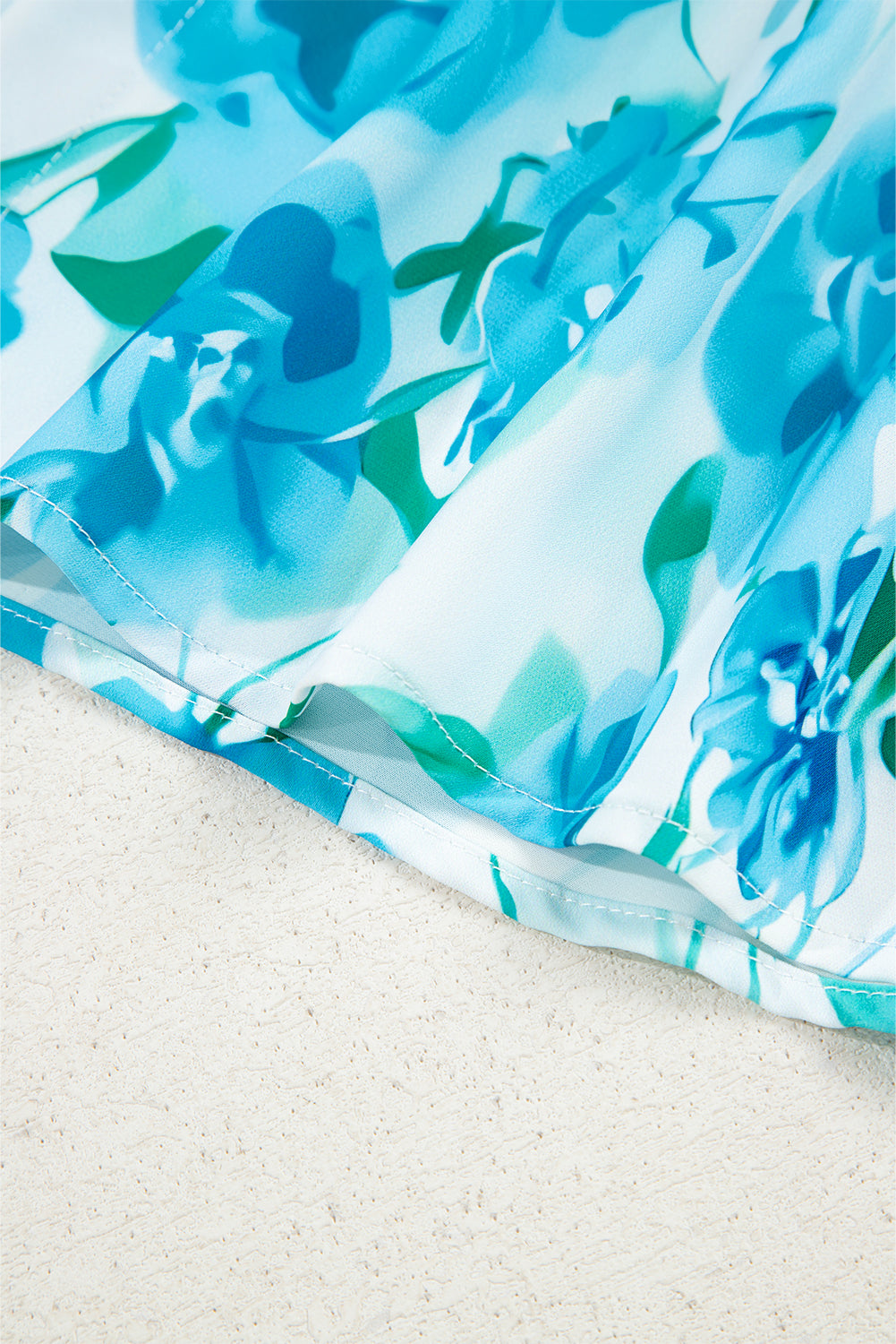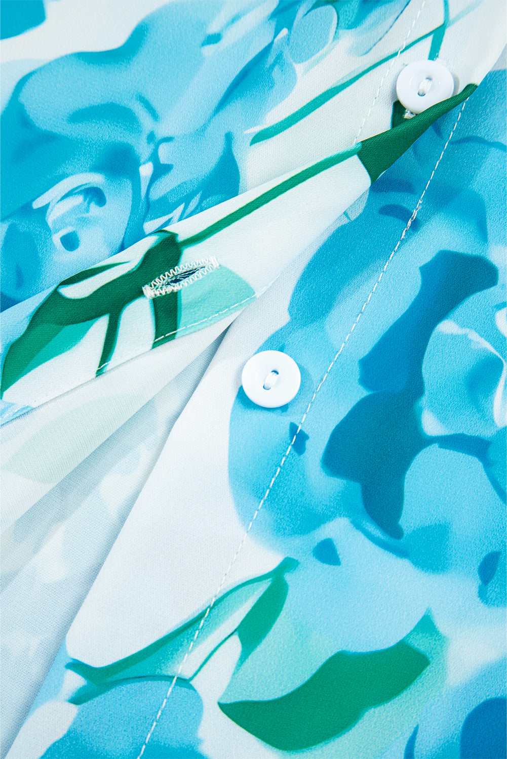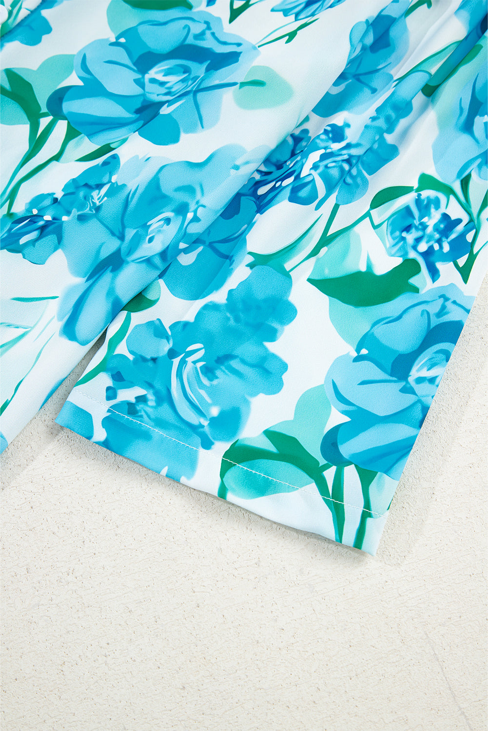 Green Floral Frilled Collar Three Quarters Sleeve Elegant Shirt