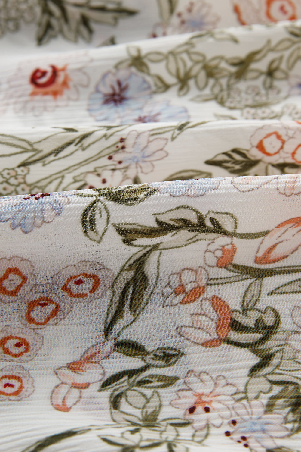 Green Floral Print Tiered Frilled Shirred Mock Neck Mini Dress