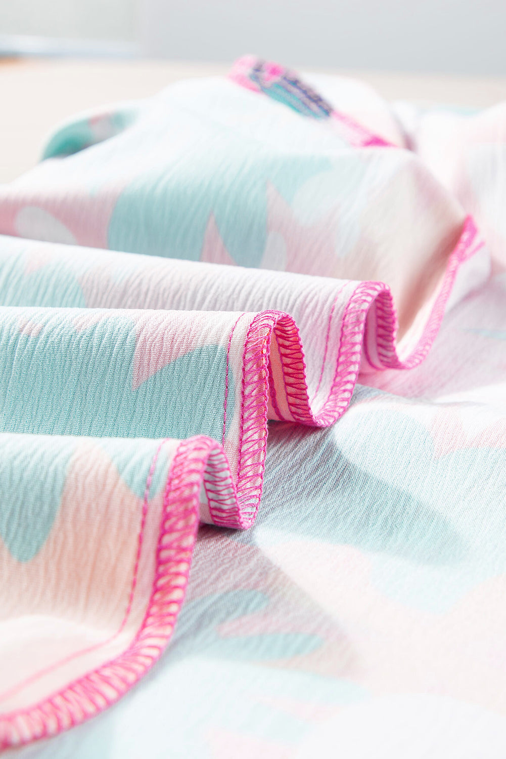 Green Floral Tie Split Neck Ruffle Trim Blouse