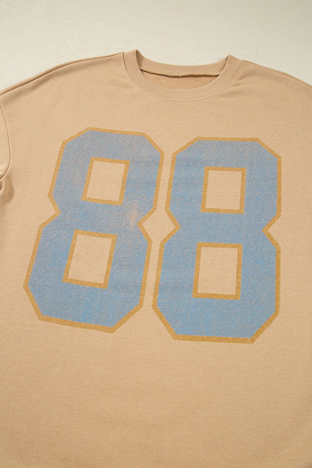 Khaki 88 Number Graphic Drawstring Hemline Oversize Long Sleeve Top