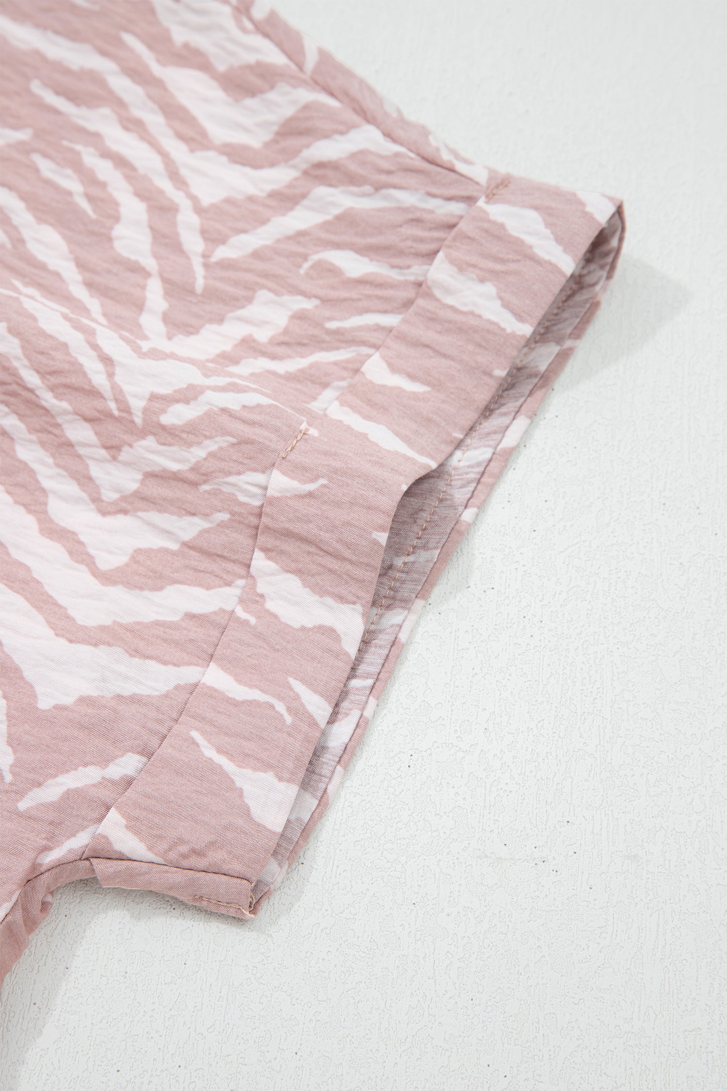 Khaki Abstract Print Cuffed Short Sleeve Loose Top Short Set