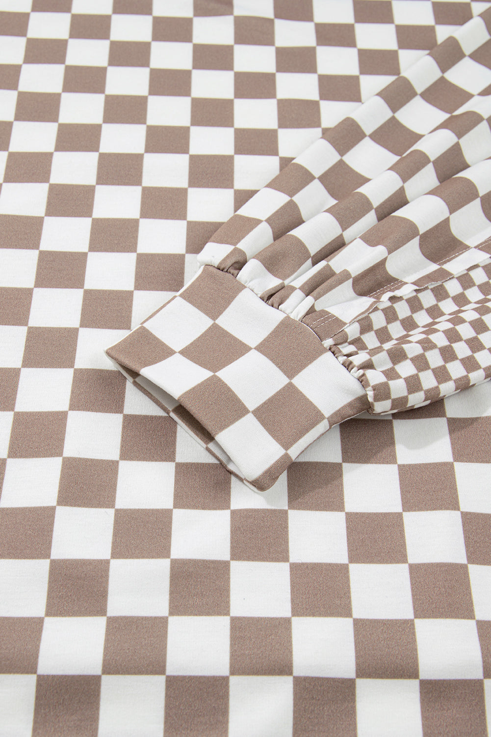 This baggy hoodie is casual chic with double checkered mixed pattern.