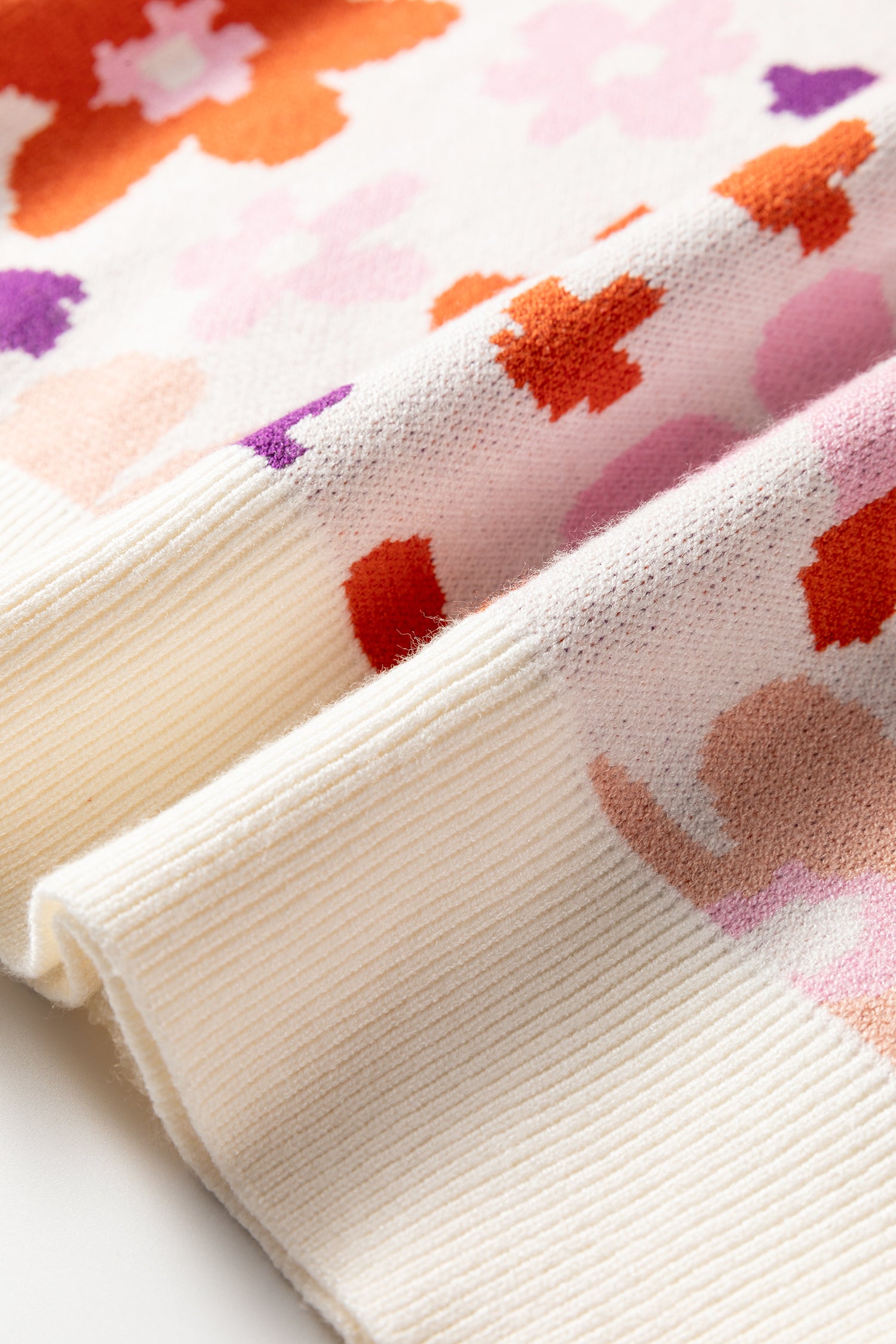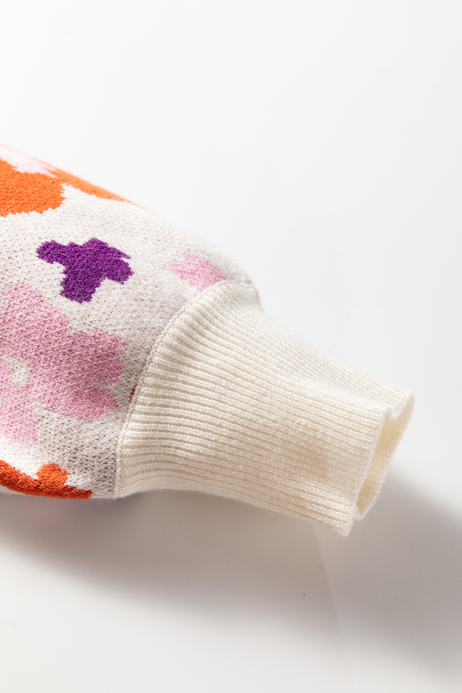 Khaki Fall Floral Pattern Drop Shoulder Sweater