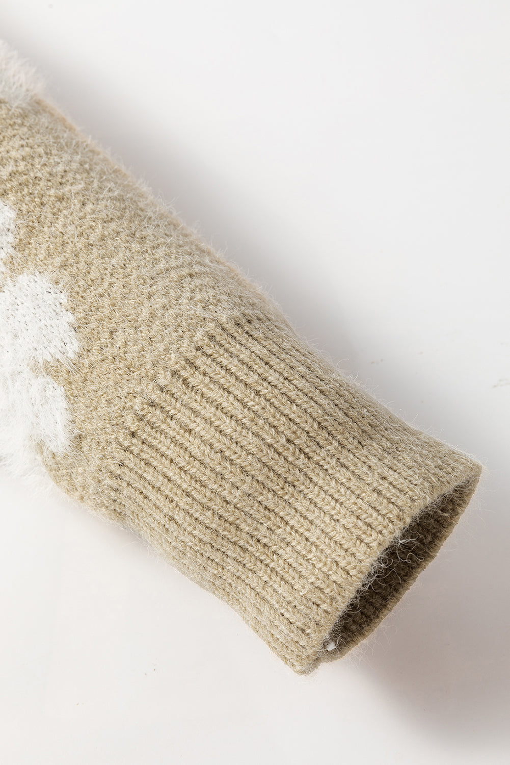 Khaki Floral Pattern Half Zip Drop Shoulder Sweater