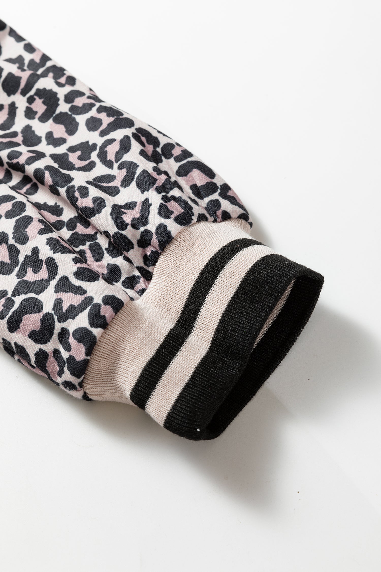 - Trendy leopard print blouse adds bold, fashionable flair.