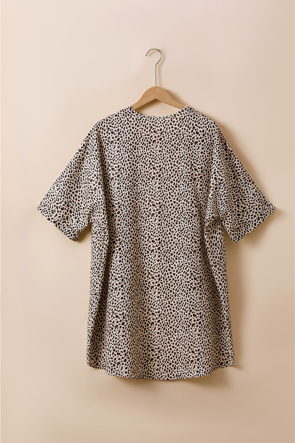 Khaki Plus Size Leopard Print Half Sleeve Open Front Cardigan