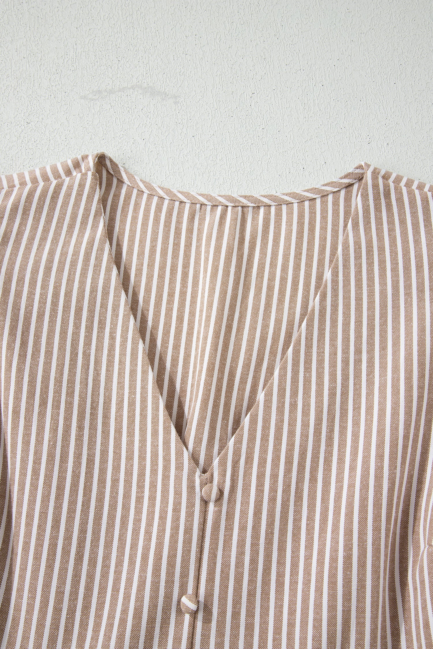 Khaki Stripe Flutter Sleeve Buttoned Front Slit Maxi Dress