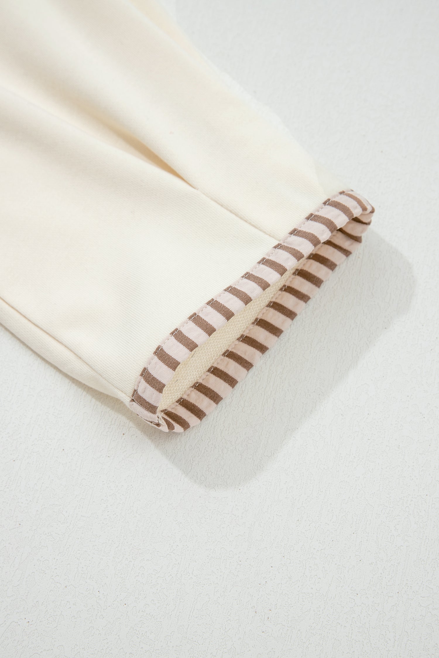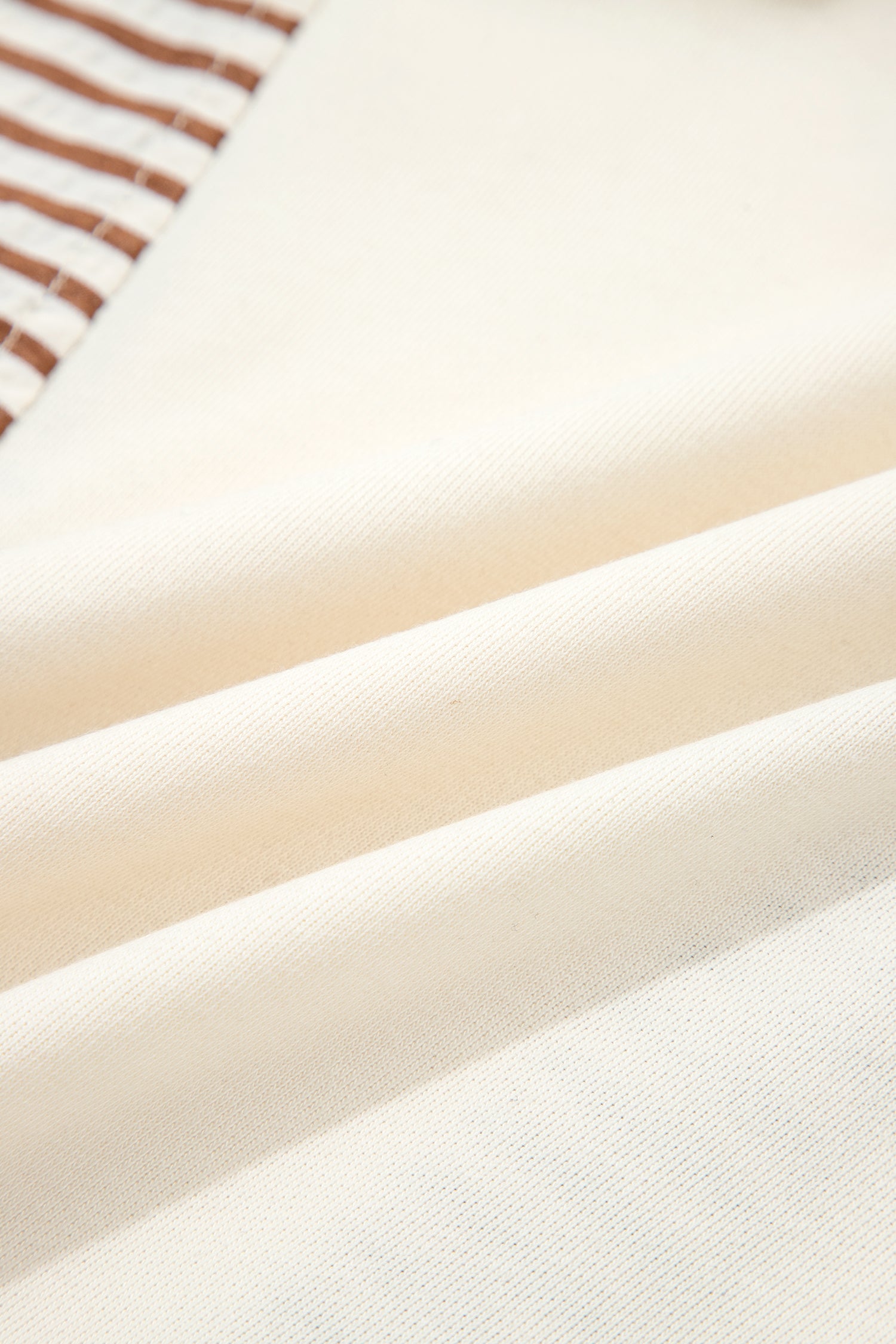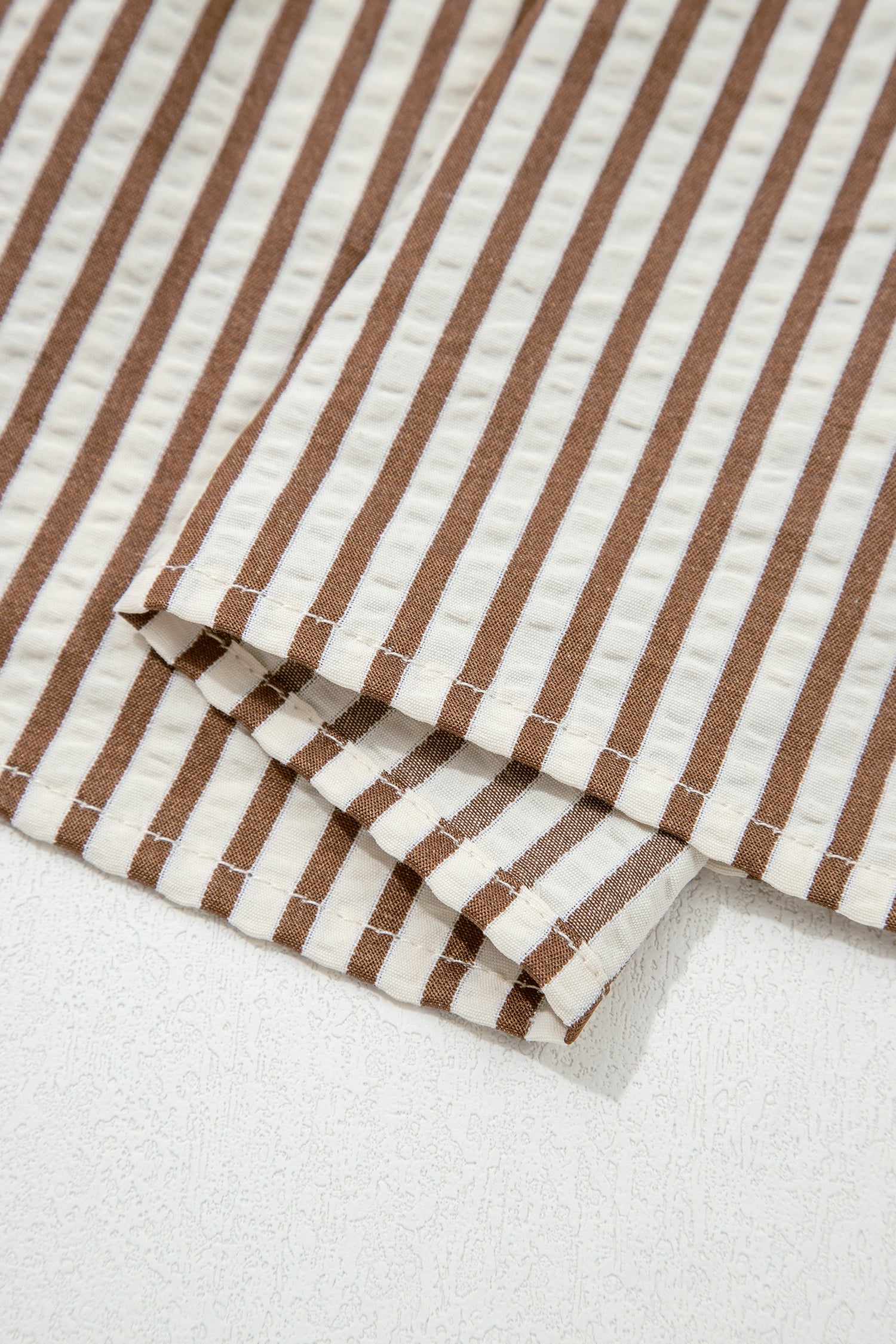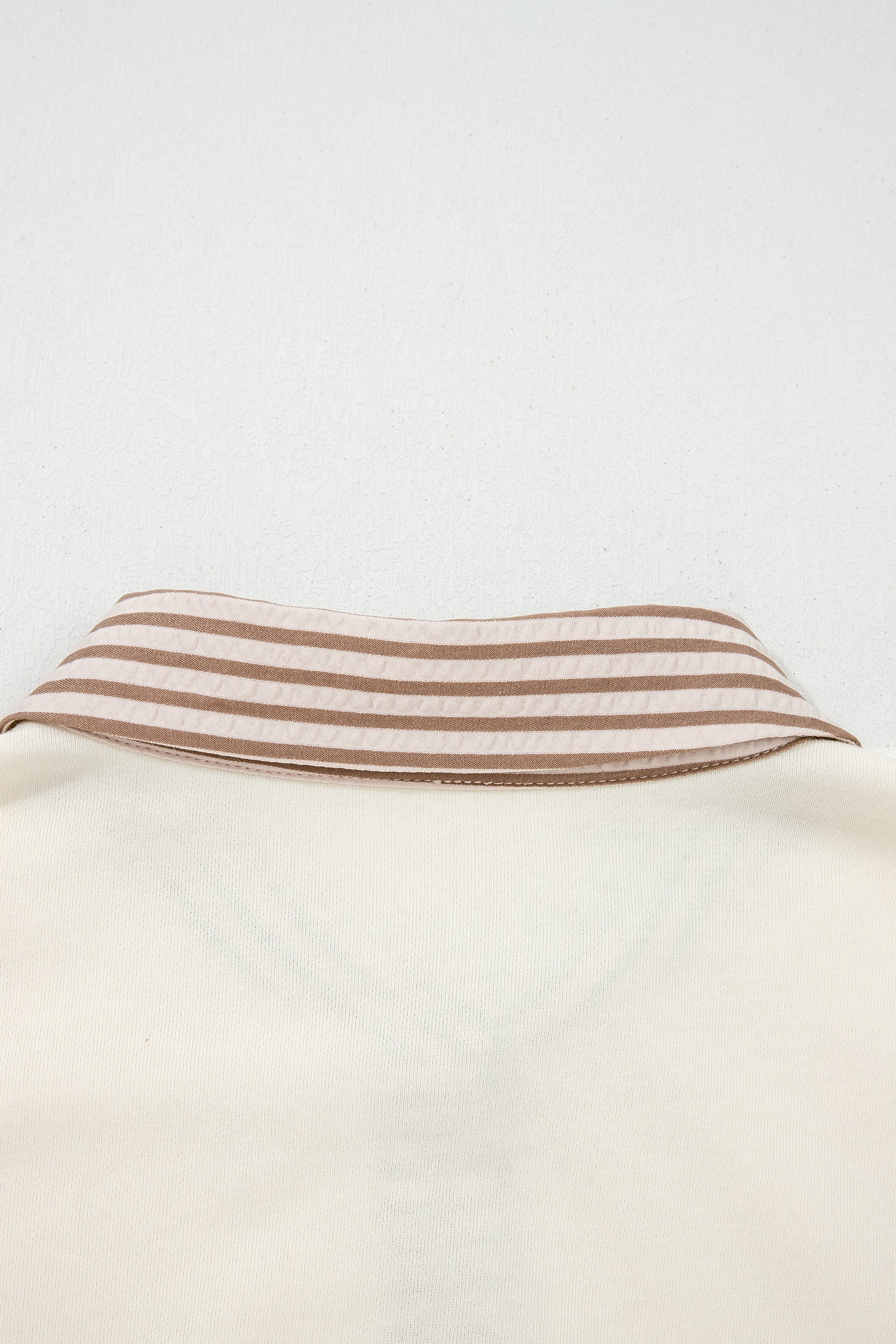 Khaki Stripe Plus Size Color Block Patchwork Half Button Long Sleeve Peplum Blouse