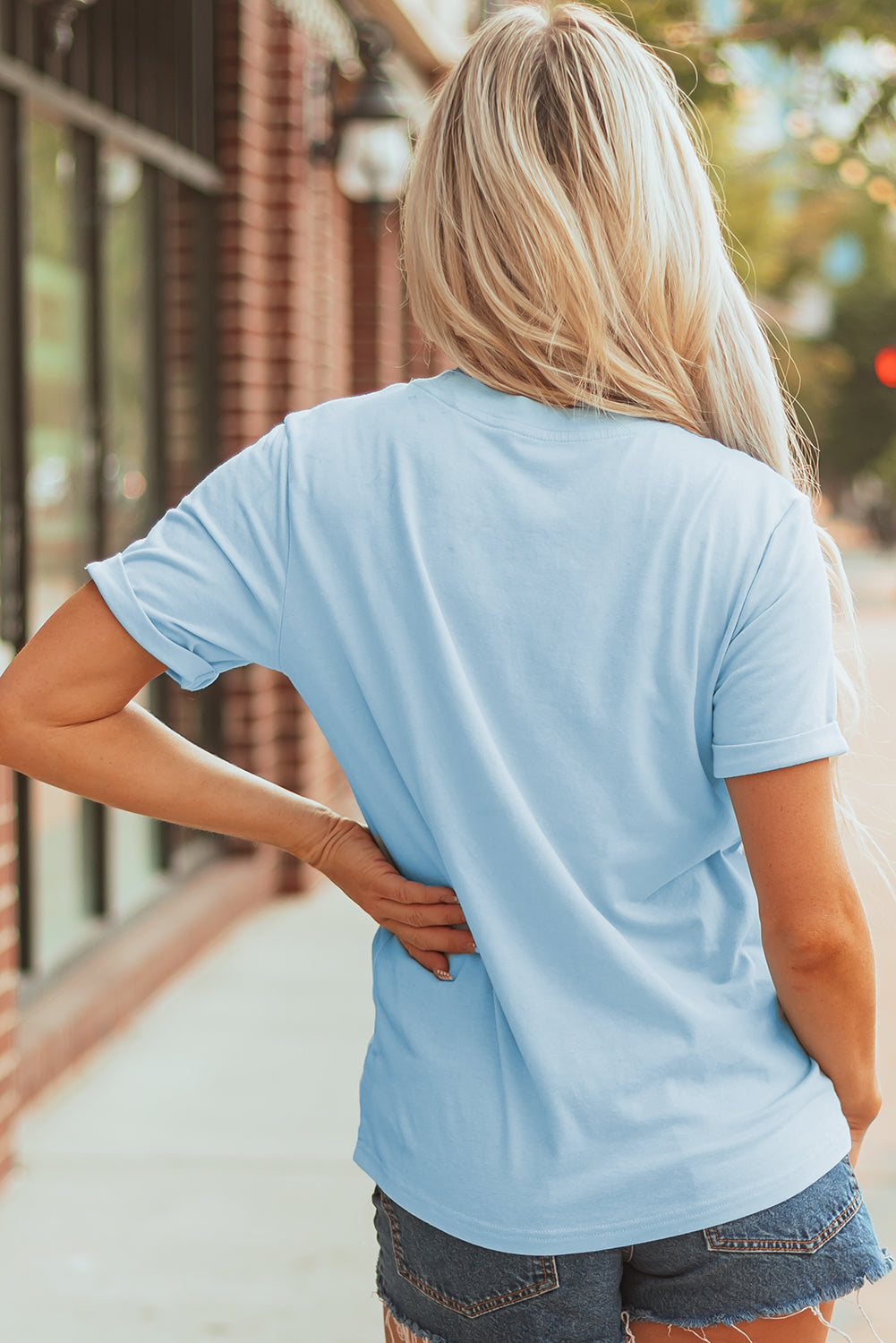 Light Blue Cheer Game Day Element Sequin Patched T Shirt