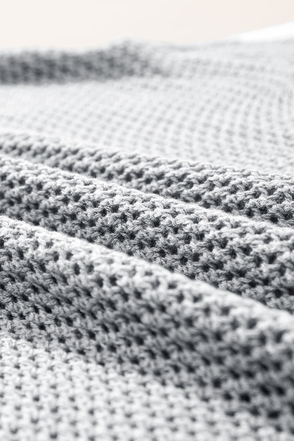 Light Grey Big Flower Hollowed Knit Drop Shoulder Sweater