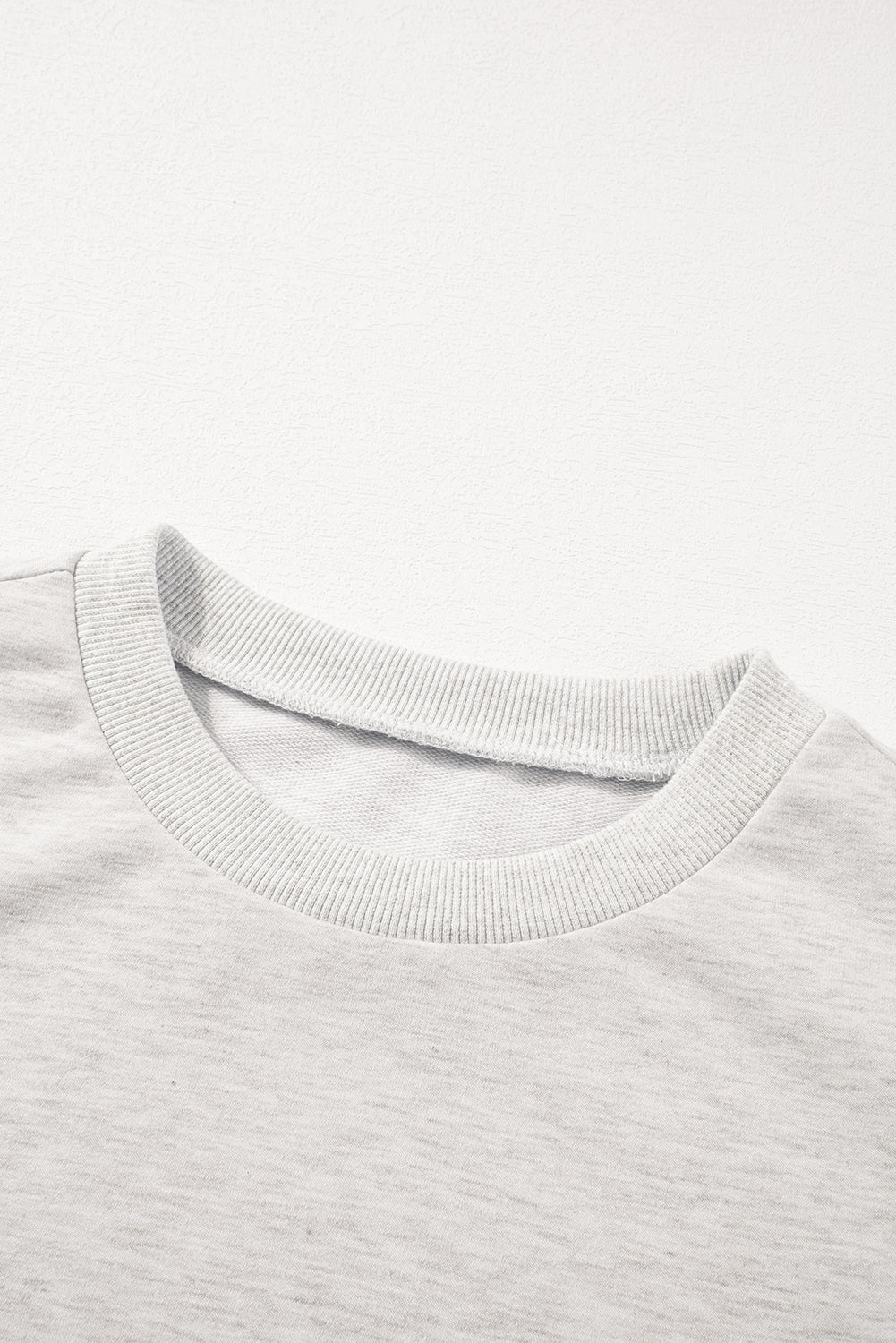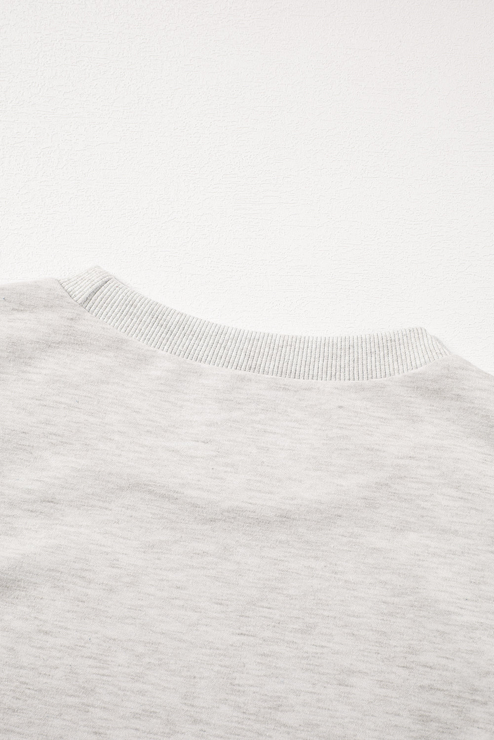 Light Grey Rhinestone Pearl Puff Half Sleeve Top