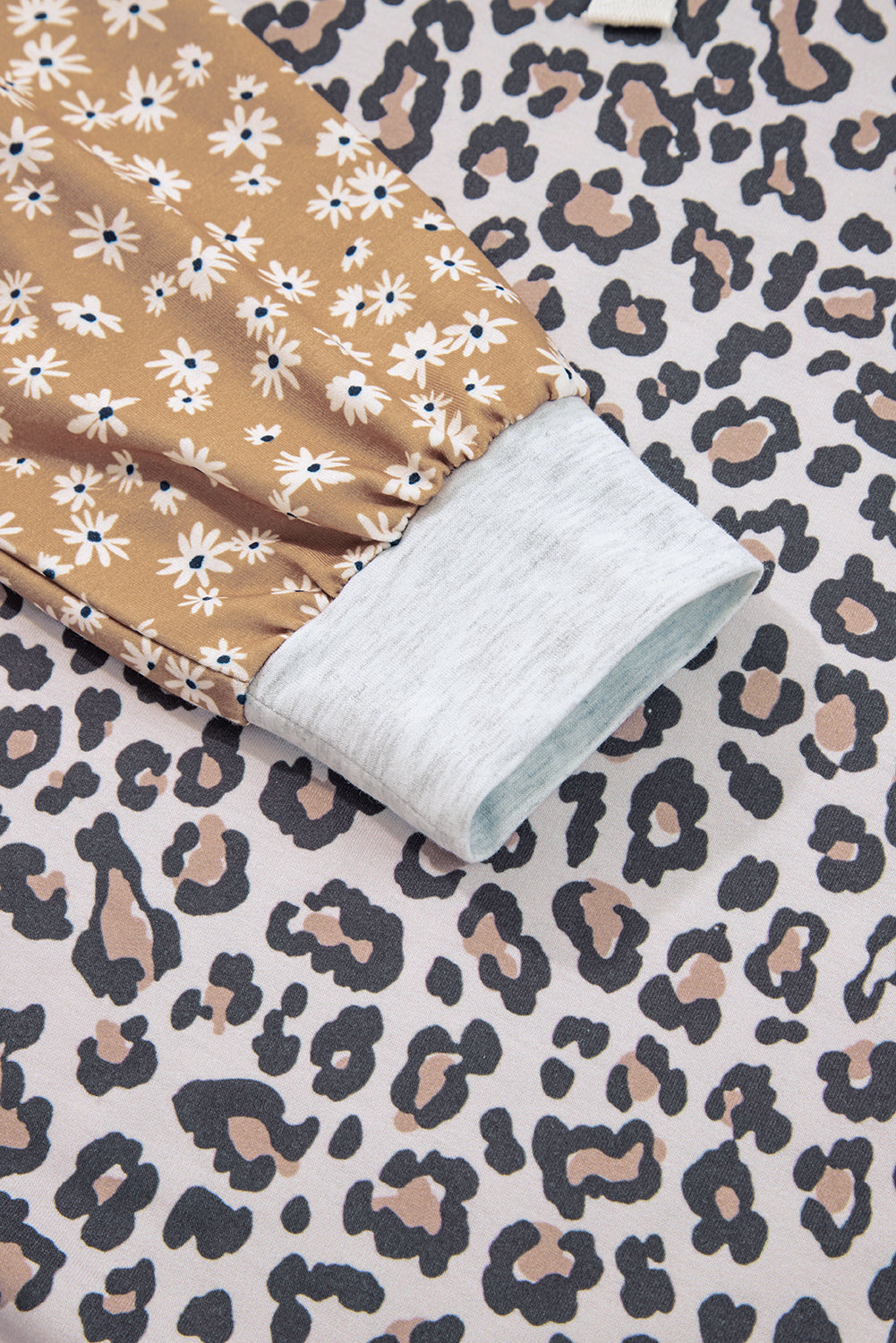 Multicolor Leopard Floral Patchwork Drawstring Hoodie
